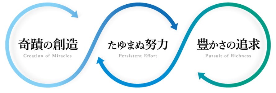 当社は、創業時からの3つの理念「奇蹟の創造、たゆまぬ努力、豊かさの追求」をもとに、常にチャレンジし続けて40周年を迎えることができました。今後も50年100年続く企業を目指して歩みをとめることなく、社会の発展に貢献していきたいと考えています。