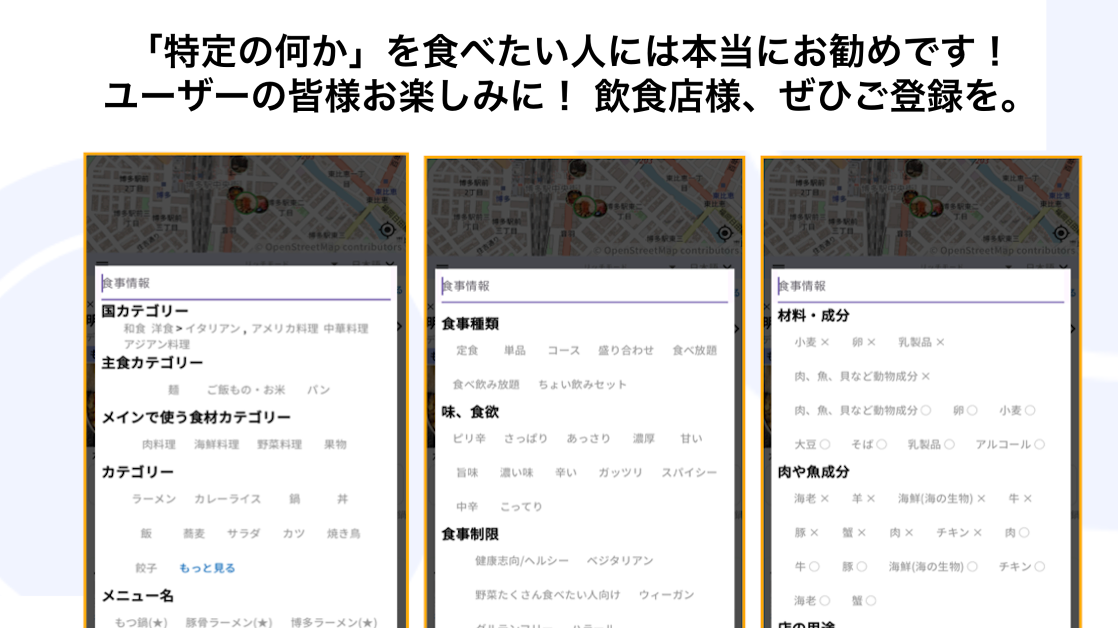 なお、まだアプリ自体B版であることと、開発に並行して飲食店を集めている最中である為、