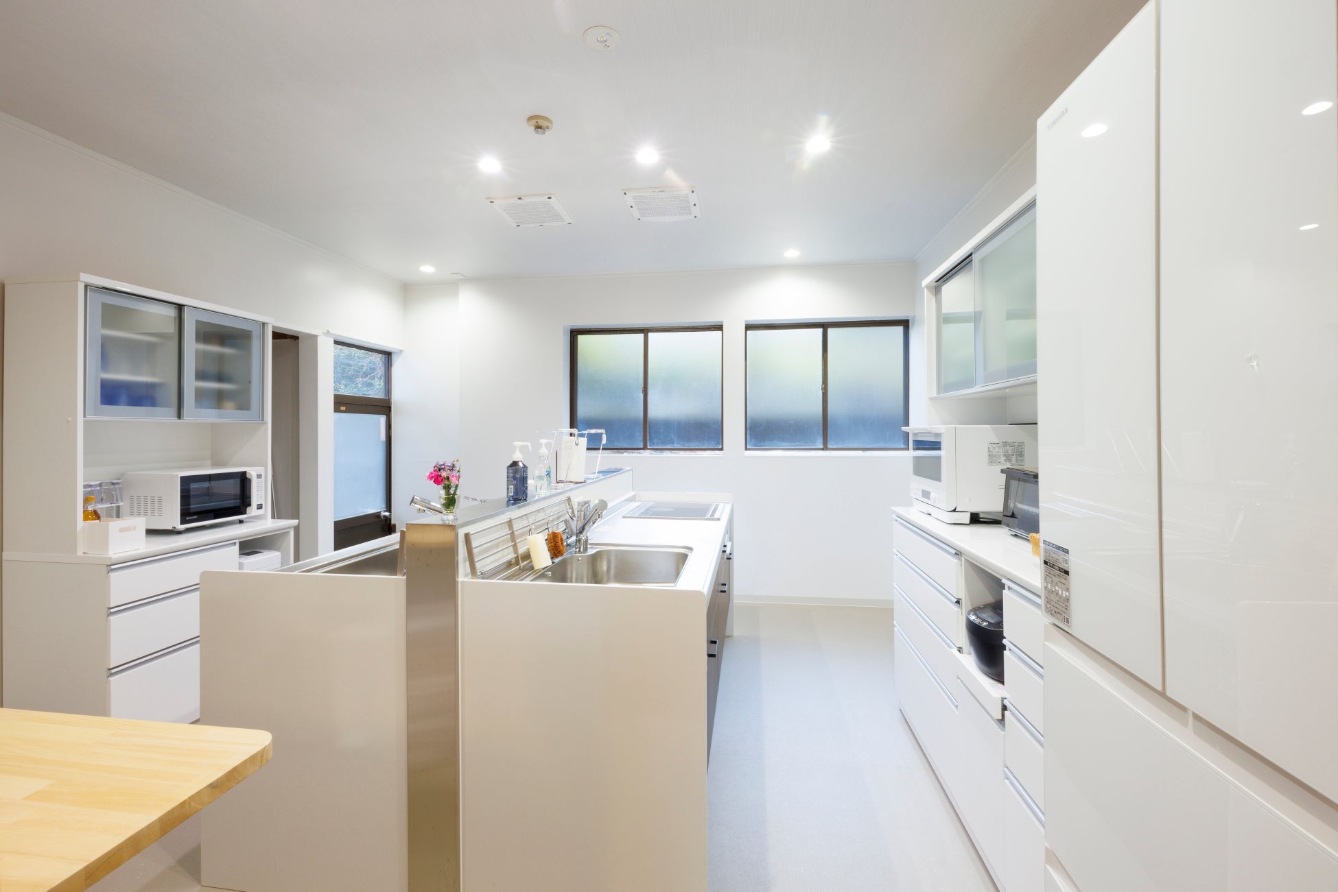 温泉は大浴場・小浴場の2か所、湯治文化の醍醐味である自炊をお楽しみいただける広めのキッチン、ご滞在中の皆さま同士で交流をしていただくためのリビングやロビーラウンジ、長期滞在に必要なランドリーなど、共有でお使いいただけるスペースや設備もご用意しています。