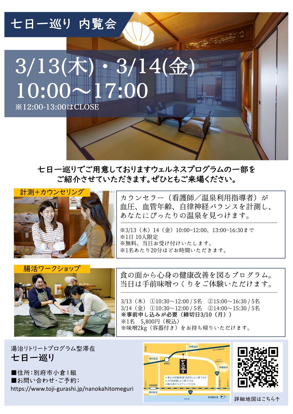 湯治ぐらし株式会社(本社:大分県別府市、代表取締役社長:菅野静)は、湯治リトリートプログラム型滞在「七日一巡り(なのかひとめぐり)」を大分県別府市に3月21日(金)にオープンします。