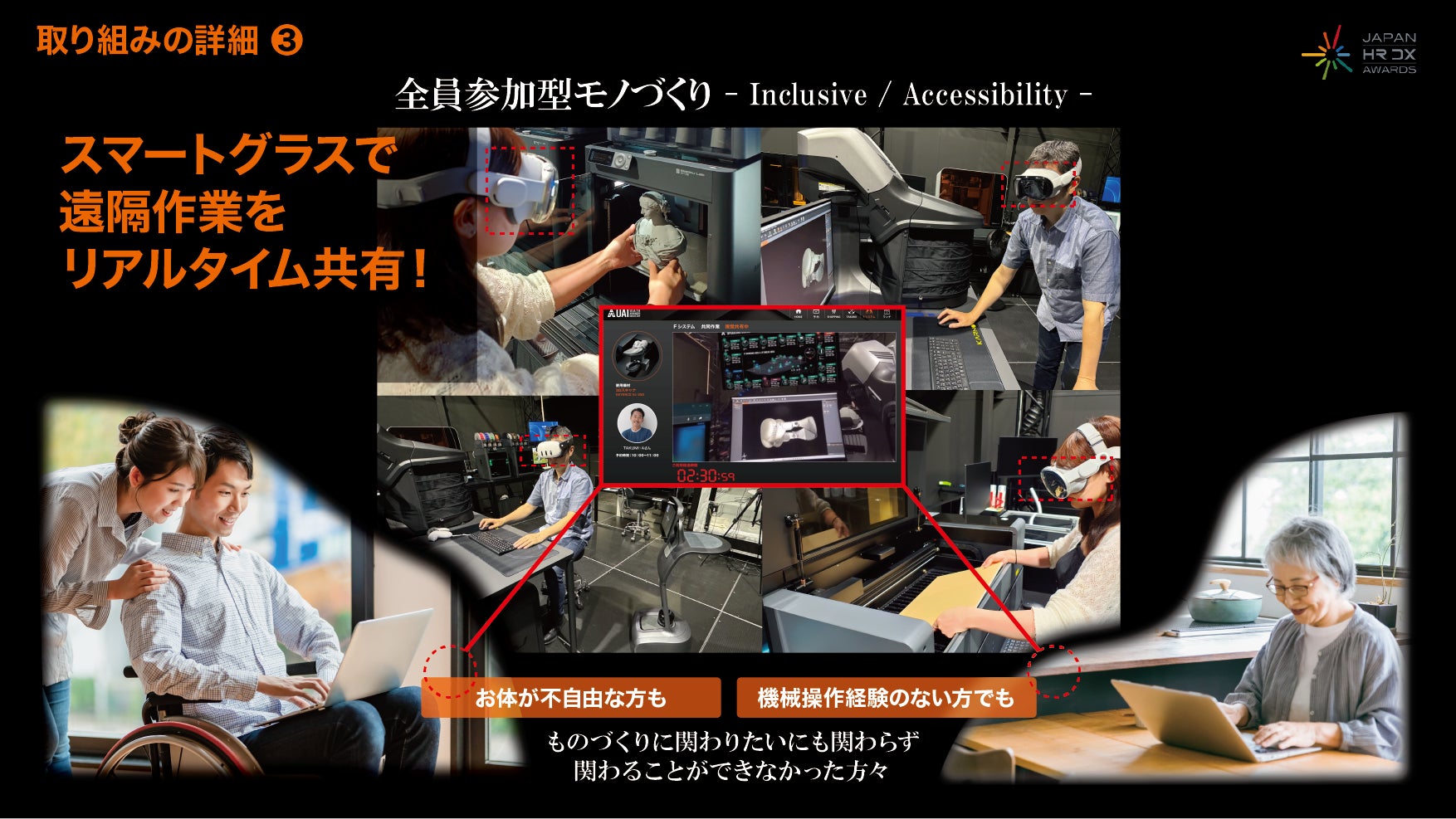 XR技術を活用したオンラインものづくりシステムにより、従来の工場や作業現場に限定されない形での生産活動を実現。これにより、地理的な制約を超えて、多様な人材がものづくりに参加できる環境を構築し、労働人口の裾野を広げることに成功しました。