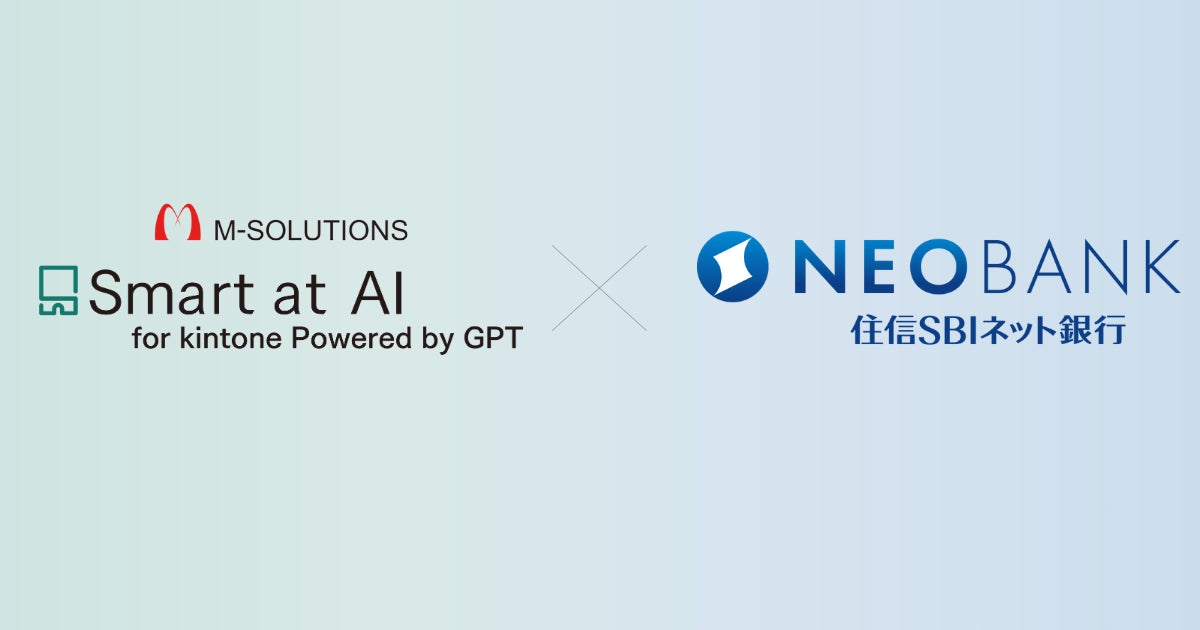 kintoneと生成AIが連携するサービス「Smart at AI for kintone Powered by GPT」(以下、Smart at AI)を提供するM-SOLUTIONS株式会社(本社:東京都新宿区、代表取締役社長:植草 学、以下 M-SOLUTIONS)は、住信SBIネット銀行株式会社(本社:東京都港区、代表取締役社長(CEO):円山 法昭、以下 住信SBIネット銀行)に導入されたSmart at AIの導入事例記事を2024年10月23日(水)に公開いたしました。