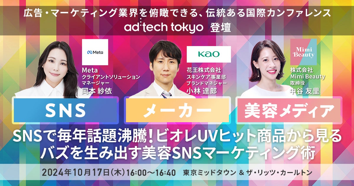 【10月17日(木)】ad:tech tokyo 2024のエグジビションステージに花王・Meta・Mimi Beautyが登壇!最新の美容×SNSマーケティングを徹底解説
