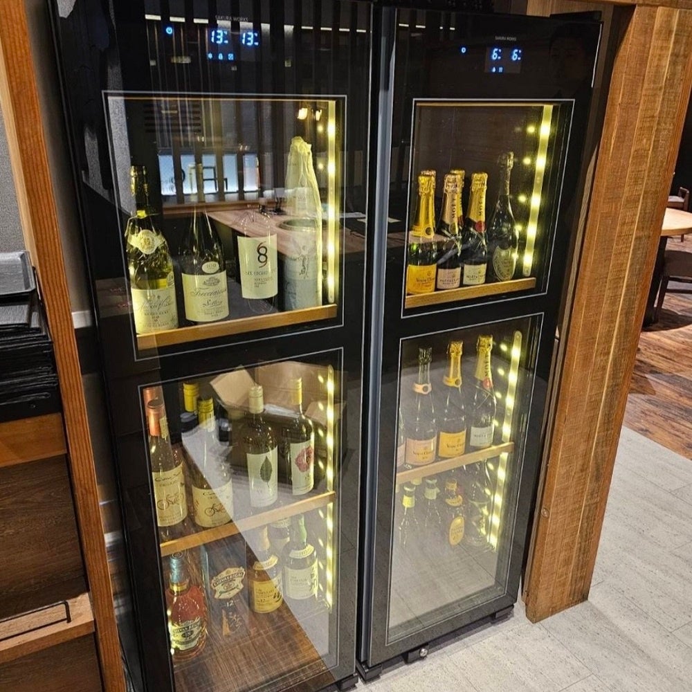 店内には種類豊富なワイン・ウイスキー・焼酎がズラッと!当店の料理に合う銘柄を厳選して取り揃えております。
