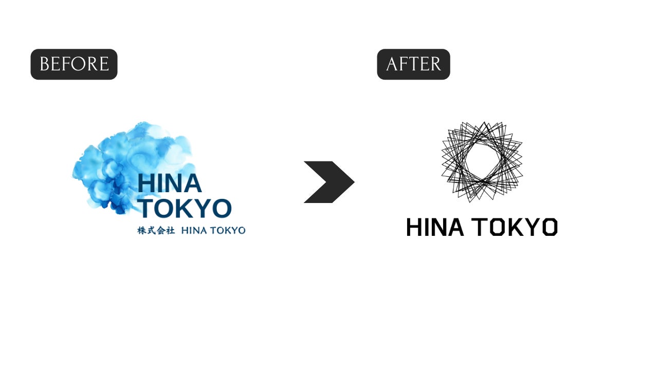 Before:株式会社HINA TOKYOの旧ロゴ After:株式会社HINA TOKYOの新ロゴ