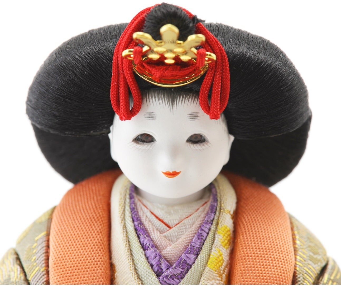 弊社が製造する雛人形はその大部分の品が伝統的工芸品の基準を満たす品ですが、現代的で可愛らしく仕上げるために弊社の雛人形ではガラスの入れ目を使った頭(お顔)を採用しています。
