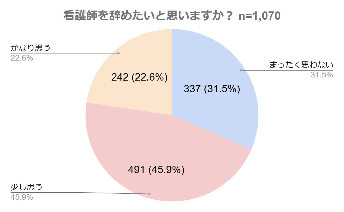 現役で看護師として働いている1070人の方を対象に「看護師を辞めたいですか?」というアンケートを実施し、以下のような結果となりました。