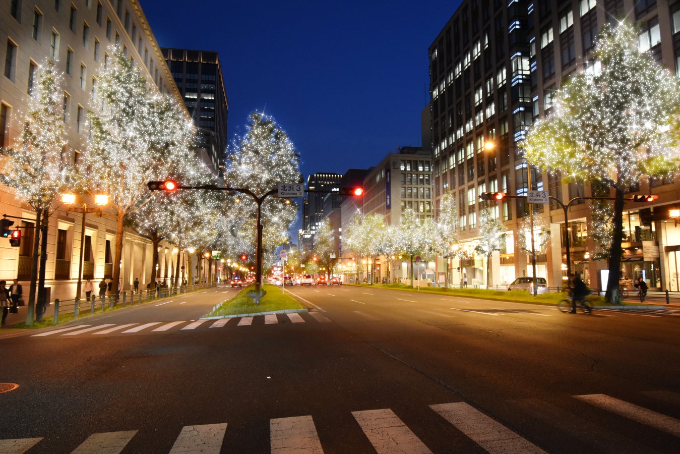 大阪ガスビルディングやホテル日航大阪など、御堂筋の時代を見続けてきたビル群をファーサイドライトアップ。イルミネーションと連動したライトアップカラーで彩られる大阪の街の発展を支えてきた建物にご注目ください。