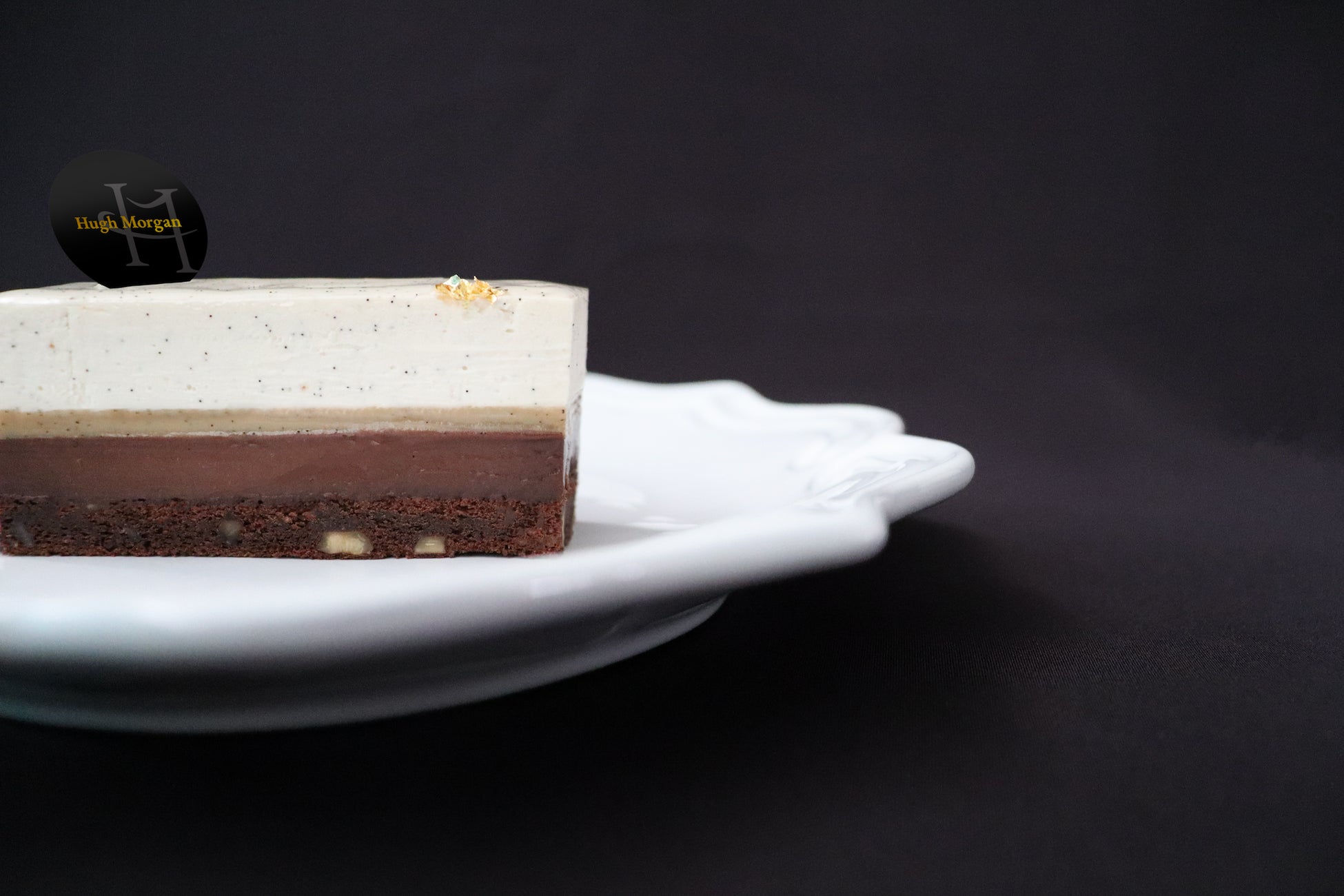パティシエが手がける繊細な口どけの特別なケーキ。バニラを主役に、マスカルポーネのクリーミーな味わいと、ナッツやガナッシュの風味が絶妙に調和した一品。バニラの香りと深みを最大限に引き出すため、バニラミルクジュレも組み合わせることで、滑らかさと一体感をさらに際立たせました。