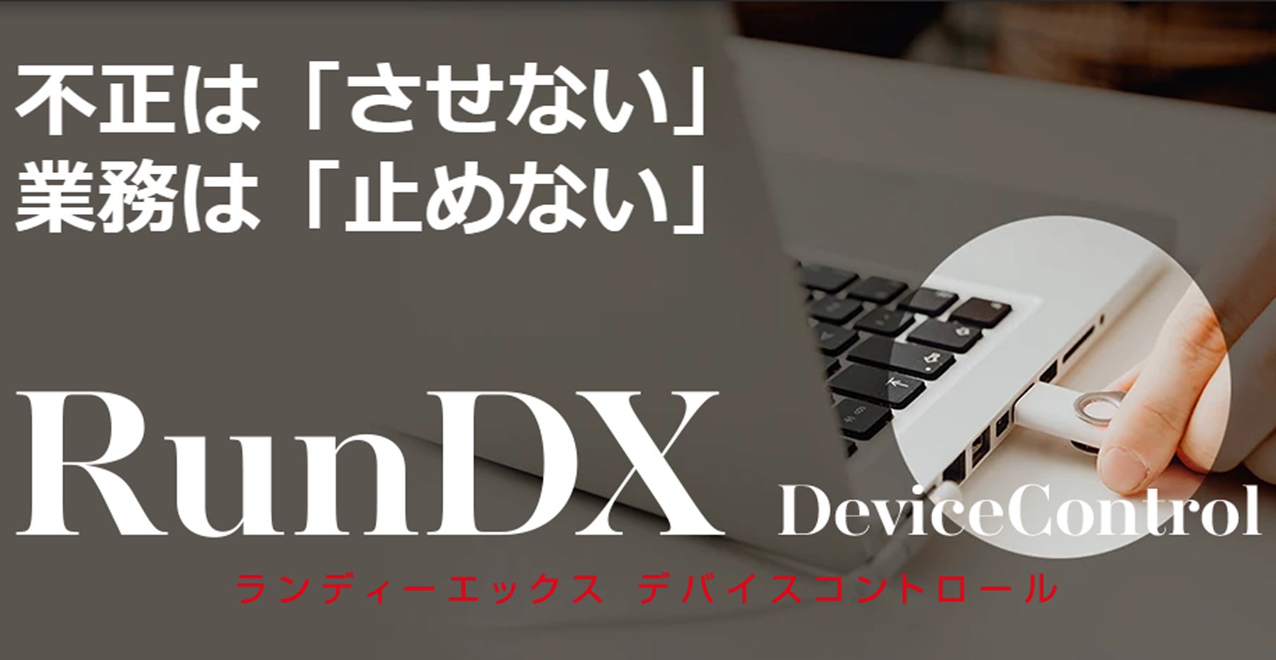 RunDXのラインナップでデバイス制御機能をご提供する「RunDX DeviceControl(ランディーエックス デバイスコントロール)」は1ライセンスから購入が可能であり、PCのスタンドアロン環境、オフライン環境、一部門のみでの小規模環境の利用など、外部デバイスを制御することで内部要因によるPC端末からのデータの持ち出し対策として、多くのお客様よりスポット対応ニーズでお引き合いをいただいております。