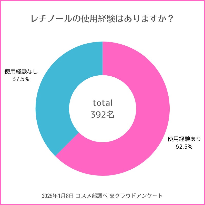 回答者の62.5%がレチノール化粧品の使用経験があると回答しました。