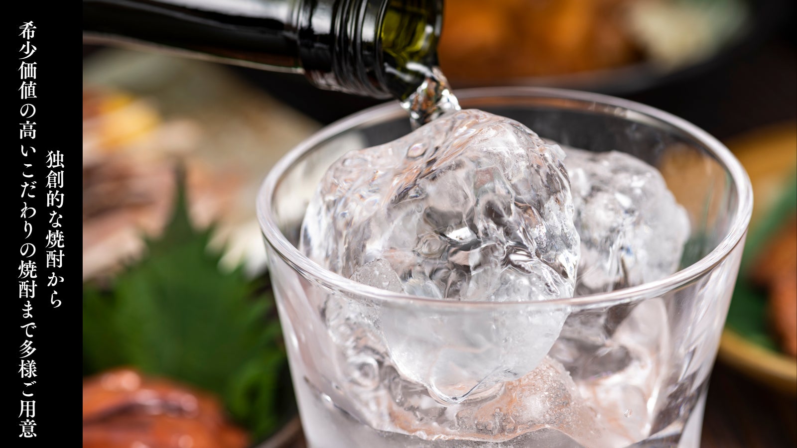 鹿児島と言えば芋焼酎、黒糖ですが、近年では麦など、県内津々浦々の独創的な焼酎から希少価値の高いこだわりの焼酎まで多様ご用意しております。焼酎蔵の造り上げた樽の効いたウィスキー、日本酒、ワインは鹿児島の地物から王道まで取り揃えております。お出しするお水は「薩摩の軌跡」硬度6度の鹿児島一の軟水を使用しております。滑らかでスッと口の中に広がる、素晴らしいお水です。