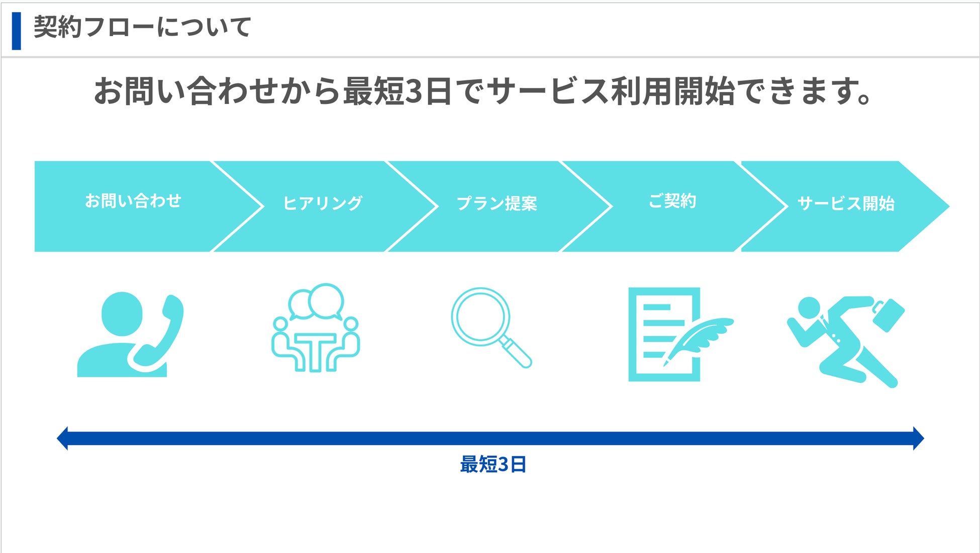 詳細な内容については担当者が丁寧にご説明いたしますので、サービスページからお気軽にお問い合わせください。