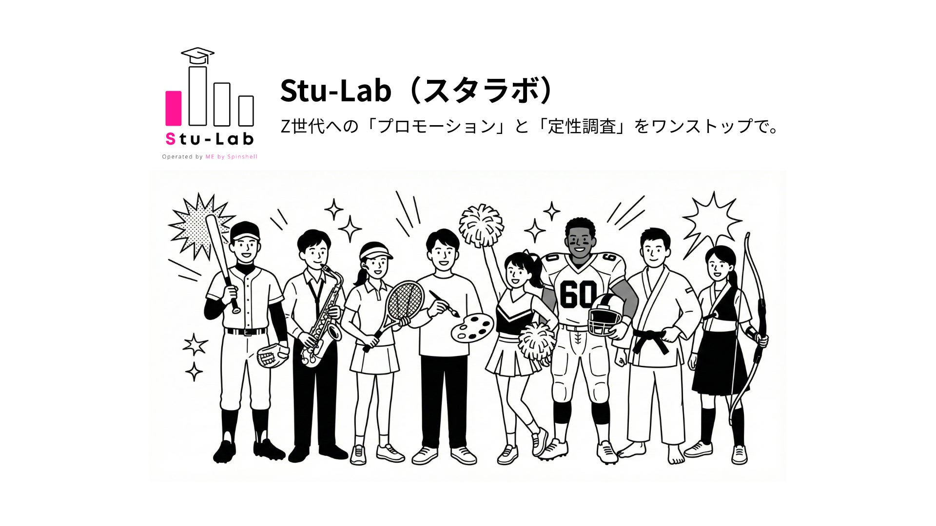 Spinshell株式会社(本社:東京都文京区、代表取締役:横田 和典)は、2026年1月5日より、企業が高校生・大学生に対して製品・サービスをキャンペーンプログラムとして提供し、若年層ユーザーの獲得と同時に、詳細なユーザーインタビューを実施できる新サービス「Stu-Lab(スタラボ)」の提供を開始いたします。