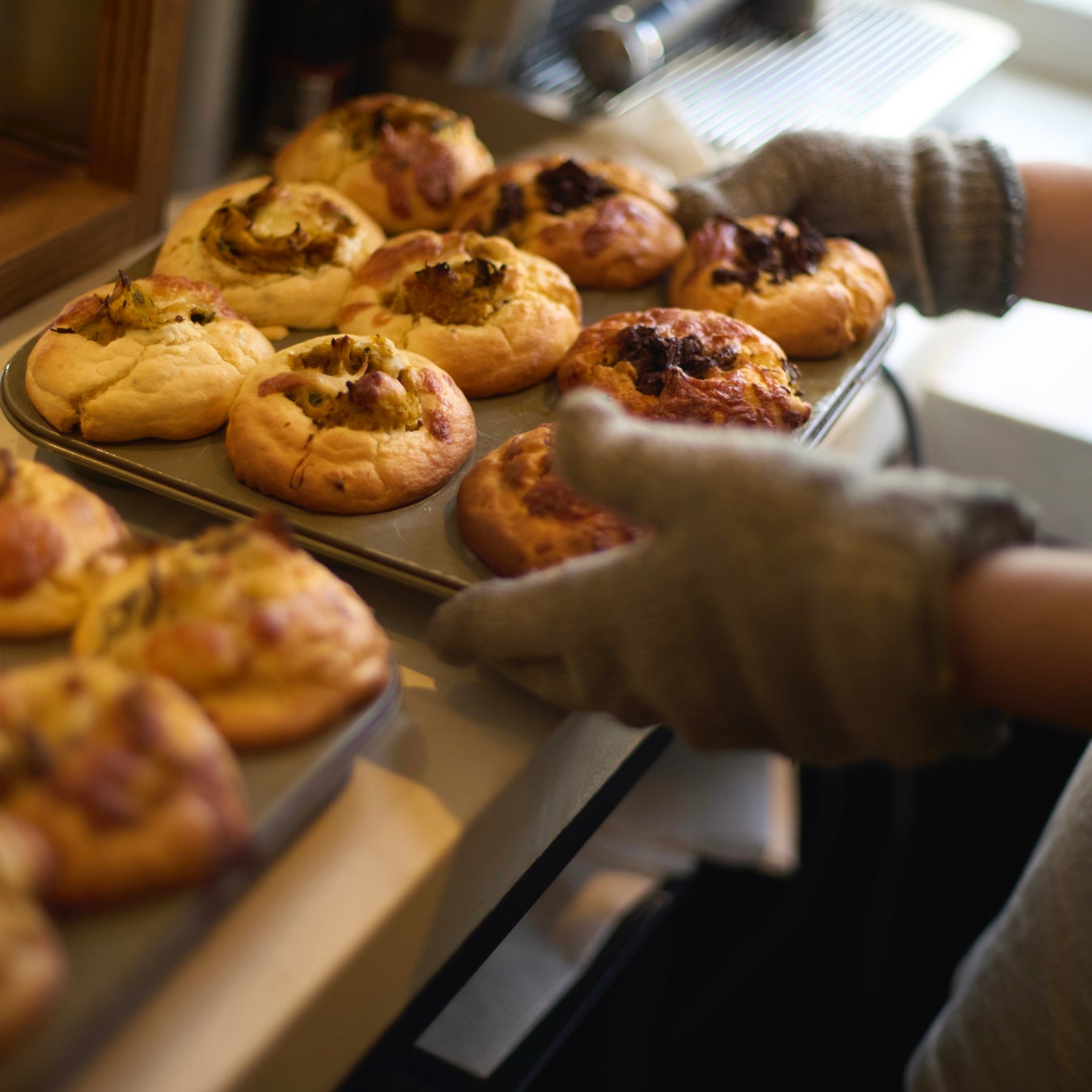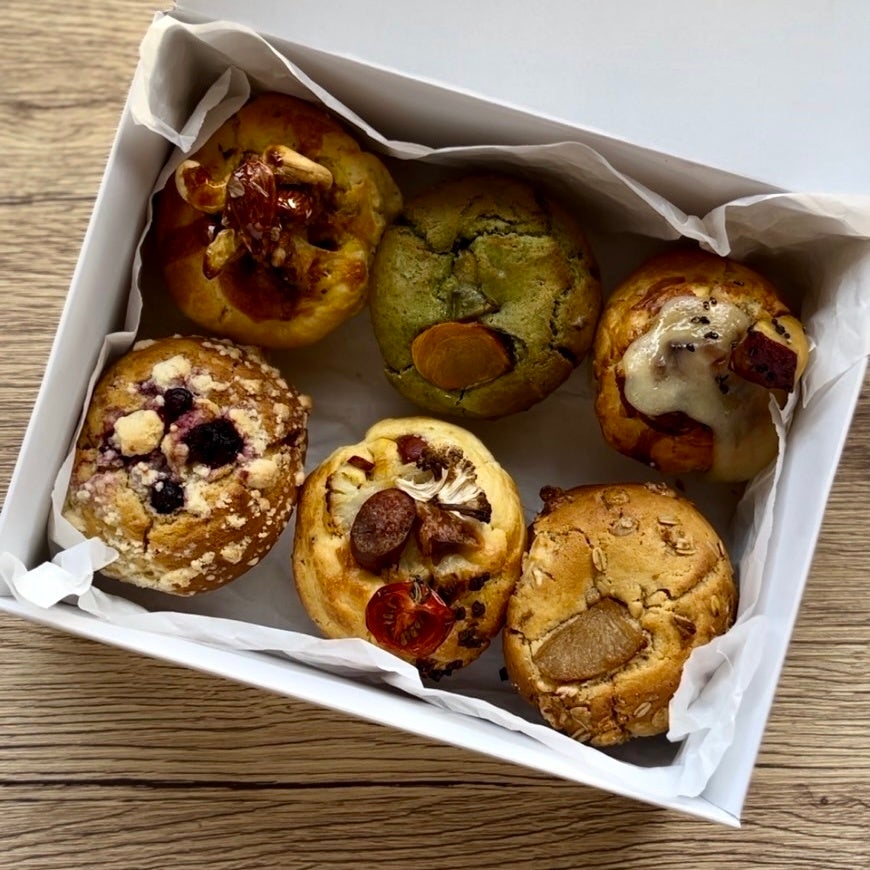 旬の食材を使った手作りのお惣菜も、あんこや抹茶といった和の甘味も、スパイスやお酒の風味を効かせた大人のお味も。なんでも受け止めてくれる、ふっくら、ほろほろ、しっとり食感のマフィンができました。