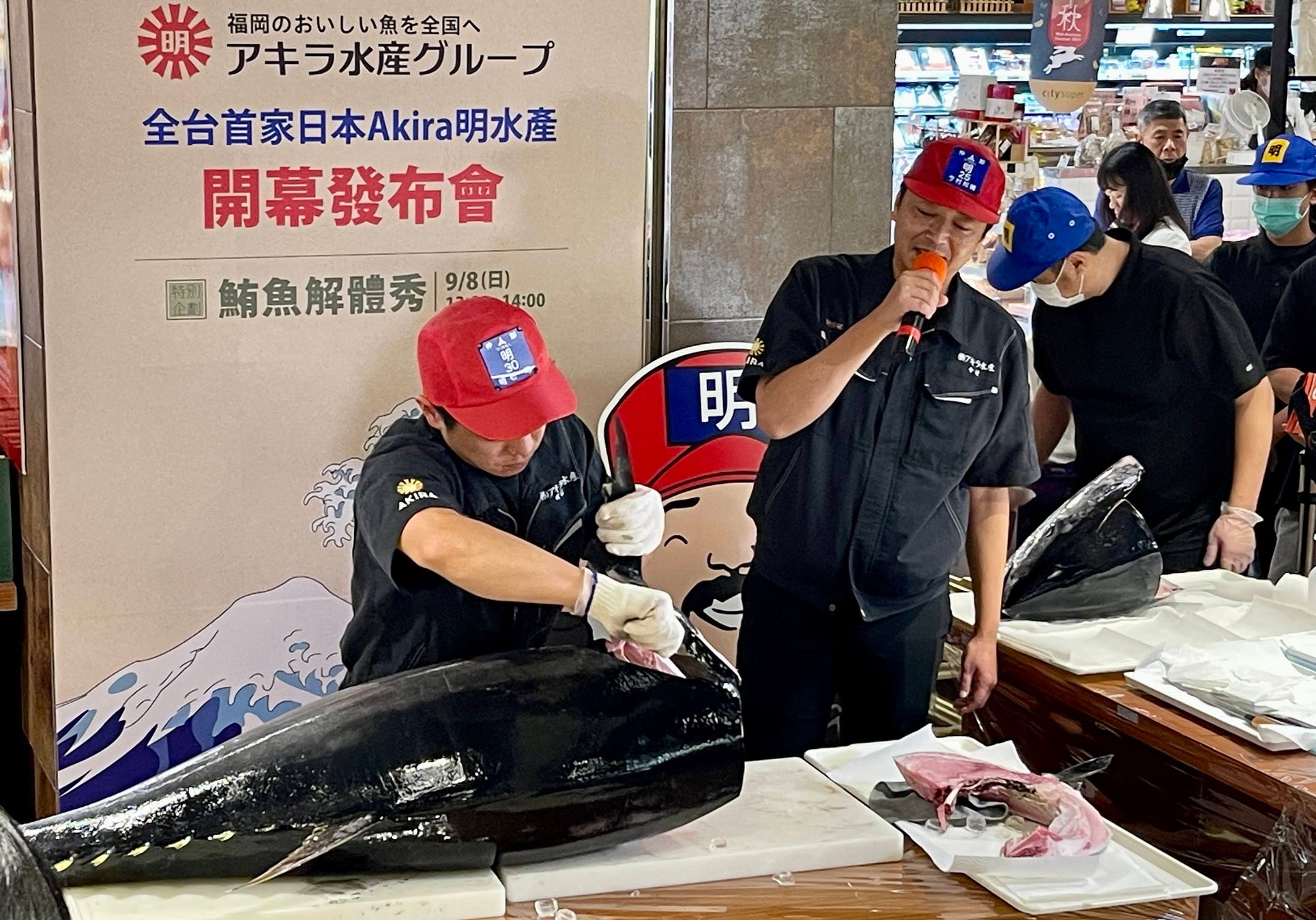 「福岡や九州の素晴らしい我々の魚を海外のより多くの方々にも美味しく食べて喜んでもらいたい」、 「日本と台湾の食の架け橋になりたい」との思いから、パートナーである台湾の商田實業とご縁あって まずは台湾の地で、創業100年超えのアキラ水産として念願であった初の海外店舗販売を目指すことになりました。商田實業が持つ台湾有数のネットワークで同志とも言える遠東SOGO、 City super、関係各社が集い、携わってくださった皆様のご尽力、多大な協力頂き、満を持して首都台北に初出店を決めました。
