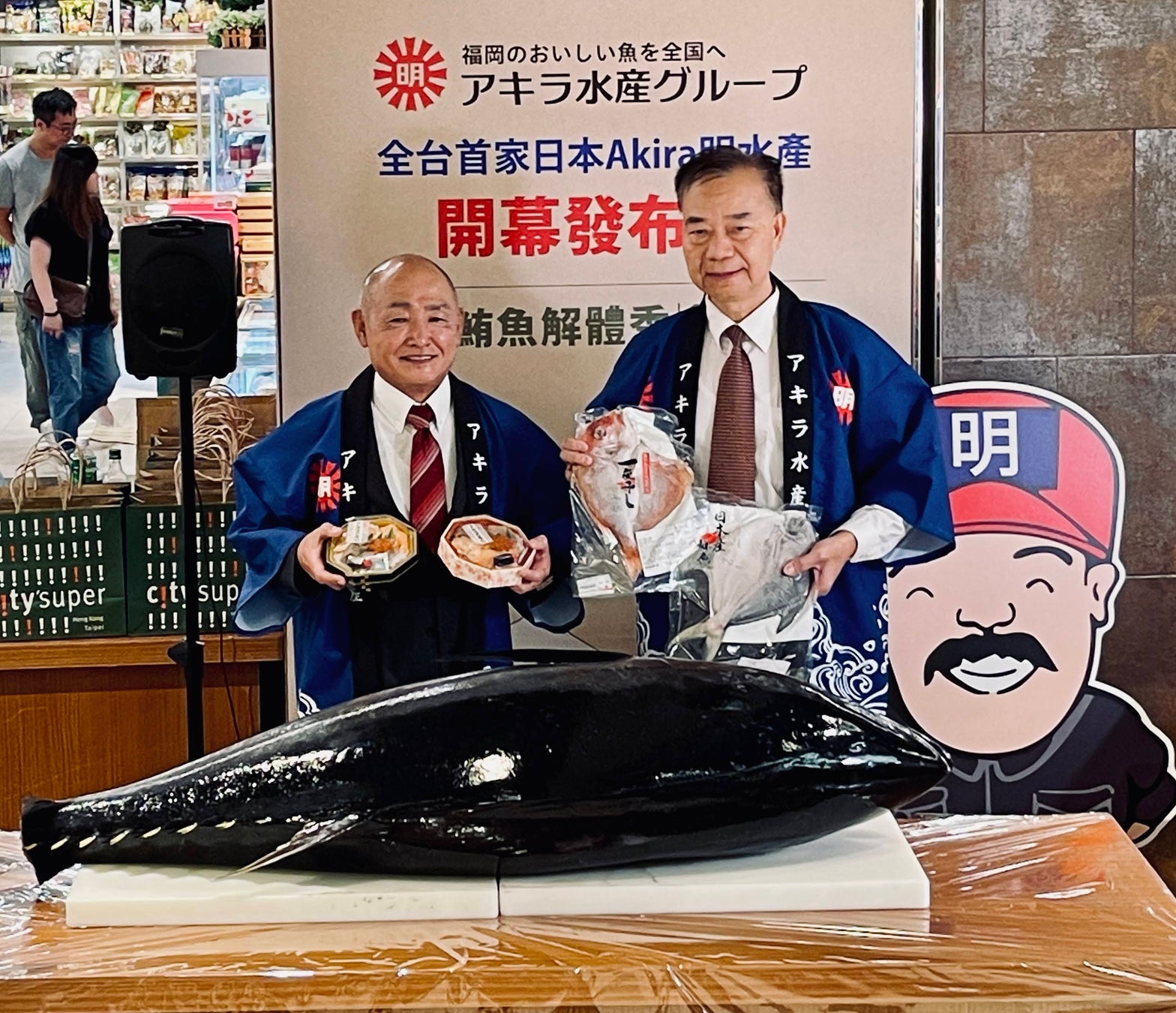 福岡の台所「福岡市中央卸売市場」の鮮魚市場で仲卸業を営み、鮮魚介類の仲買や加工、販売を行うアキラホールディングス(本社:福岡市、代表取締役社長 安部 泰宏)傘下の株式会社アキラ水産(代表取締役社長 上田 浩祐)は2024年9月1日、台湾台北市の遠東SOGO復興店City Super内に水産販売店をオープンしました。アキラグループをはじめとした福岡市中央卸売市場鮮魚市場での海外出店は初となります。