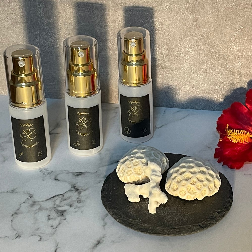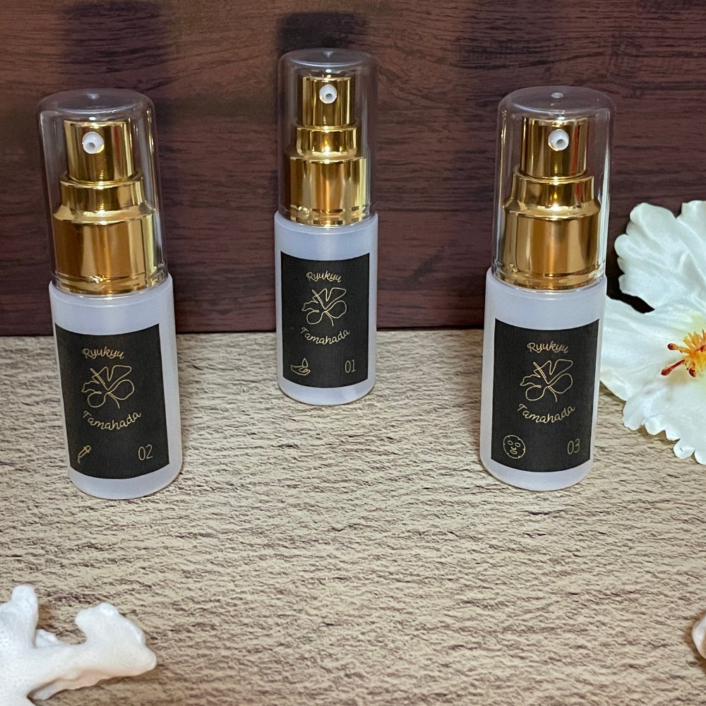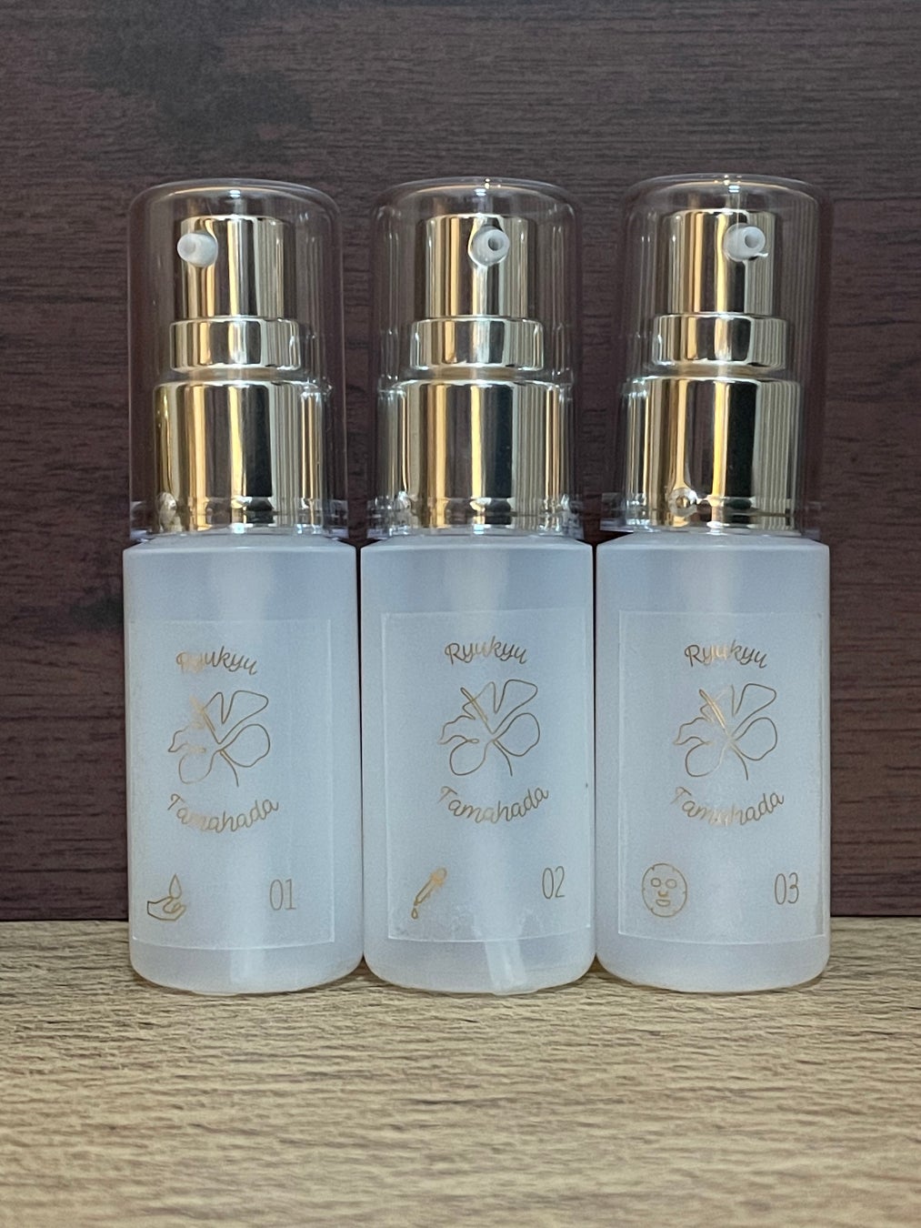琉球珠肌は宮古島産ハイビスカスのエキスを使用し、日焼けケアにフォーカスしたスキンケアです。国産では珍しい3STEPタイプで、旅行中でも使いやすい製品となっております。
