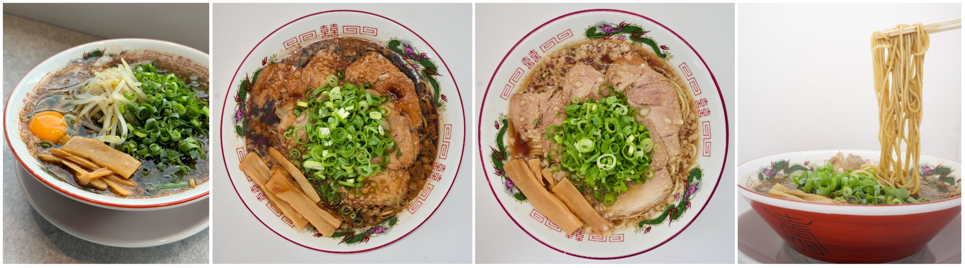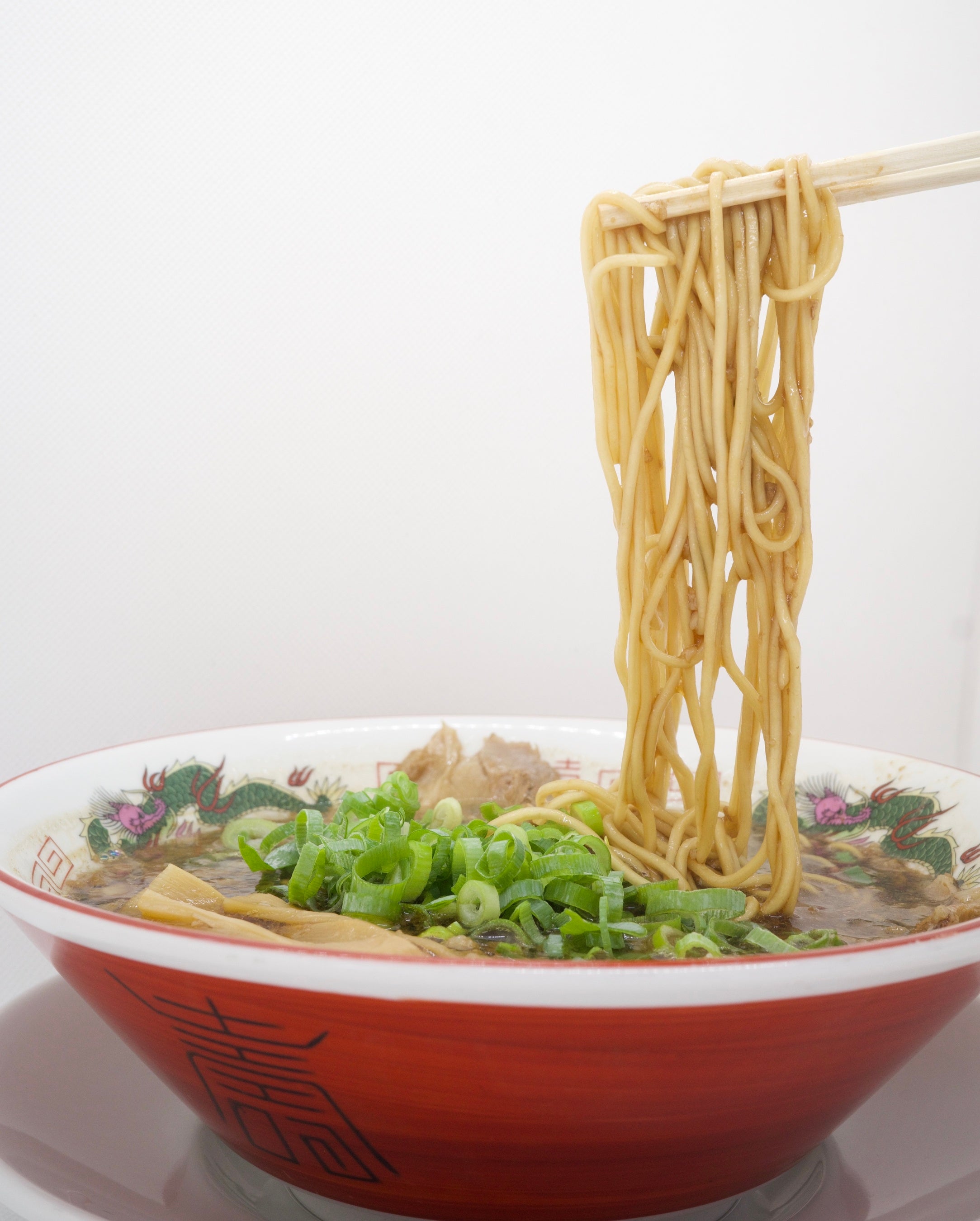①強豪ラーメン店御用達の近藤製麺の麺や醤油を使用