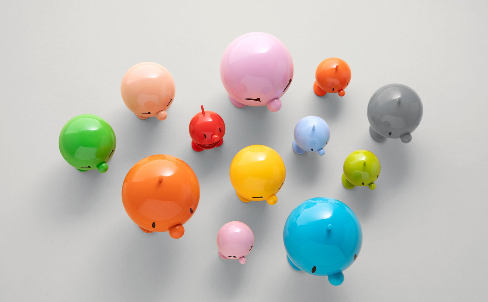 丸い形、豊かな色彩、そして何よりカワイイ揺れ方でハッピーを広め、人々に幸せと笑顔を届けるデザインオブジェです。