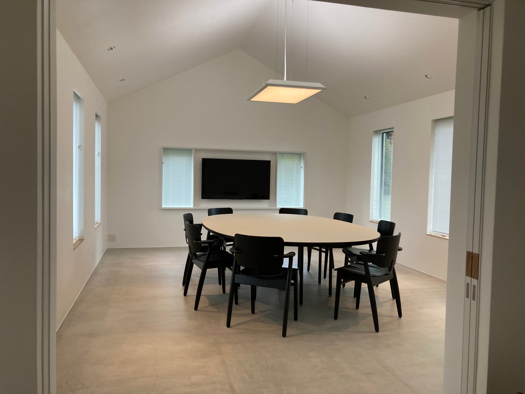「ワークショップ中に経営者・社員のみなさまがより集中でき、本質的な意見を引き出すためには何が必要だろうか?」と考えた末に、新社屋にBANSOのための空間を作ることに決めました。BANSOのワークショップルームは、普段は向き合いたくても時間の取れない経営課題やビジョンについてじっくりと話し合えるように設計されています。電話や業務による中断がなく、経営者と社員のみなさまが自社の「さまざまな課題」について話し合い、新たな方向性を見出すために重要な場となります。日々の業務から一旦離れて、自社のためだけに向き合うことのできる時間を提供いたします。