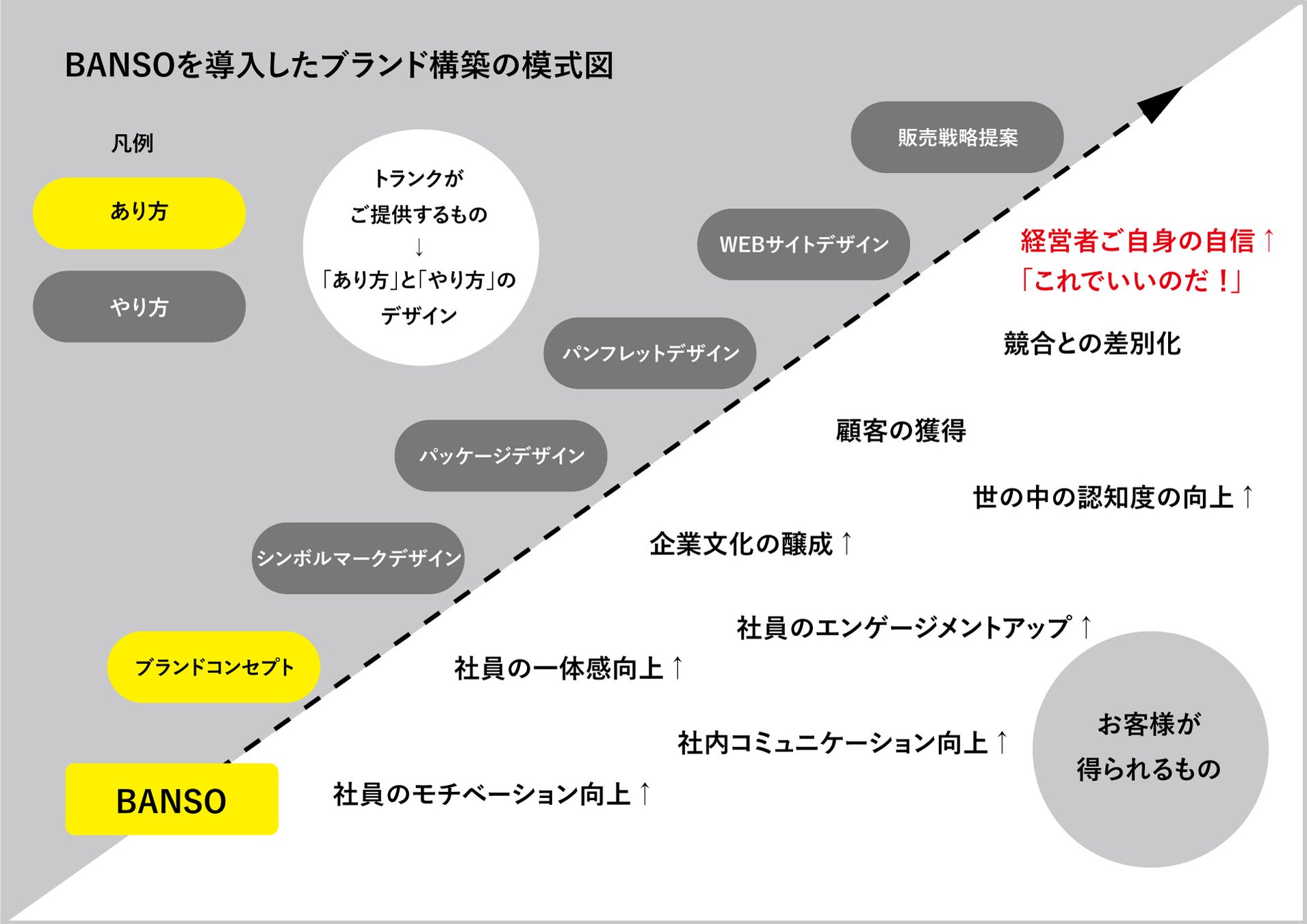 「BANSO」は、このような課題に対してコンセプト(あり方)とデザイン(やり方)を一貫して提供するブランディングサービスです。(下記図参照)