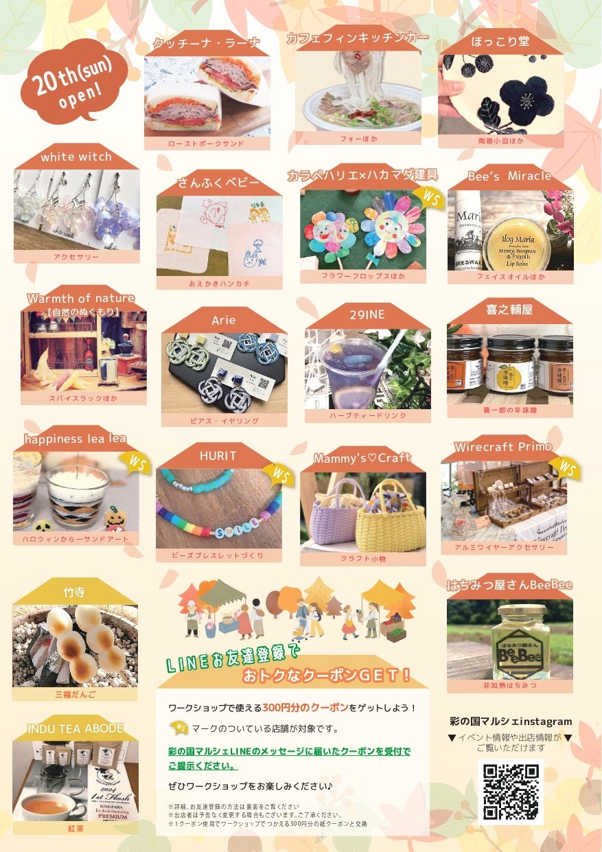 彩の国マルシェでは、他にもワークショップが多数出店します!