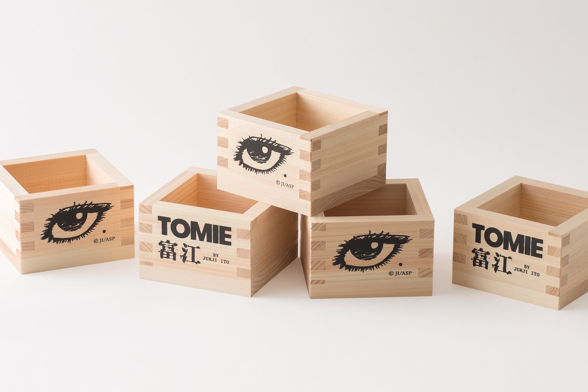 『もろみ』からインスピレーションを得て、富江のイラストをシルクスクリーン印刷した特別な枡を制作。伝統的な酒器としての用途はもちろん、小物入れとしてもお使いいただけます。