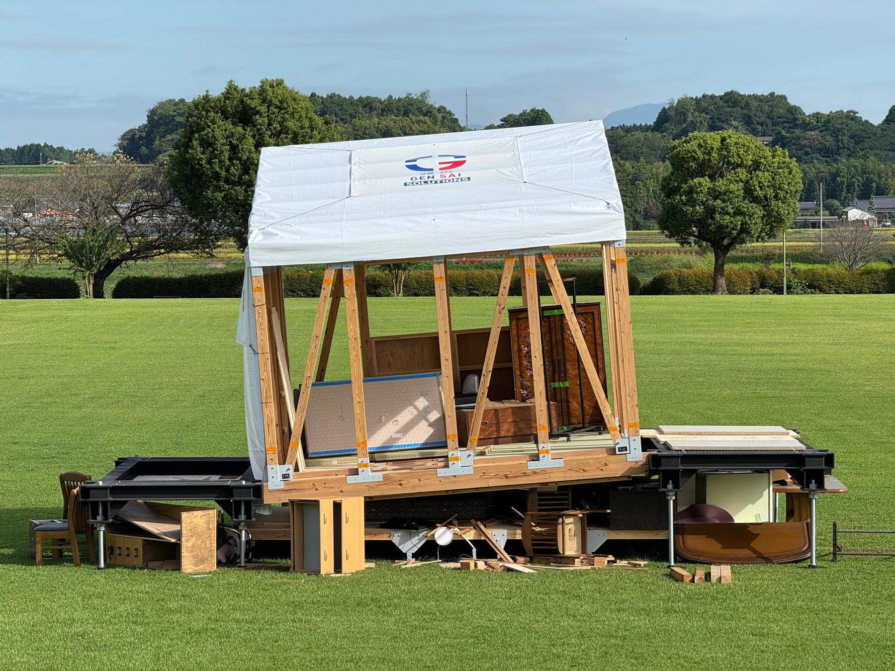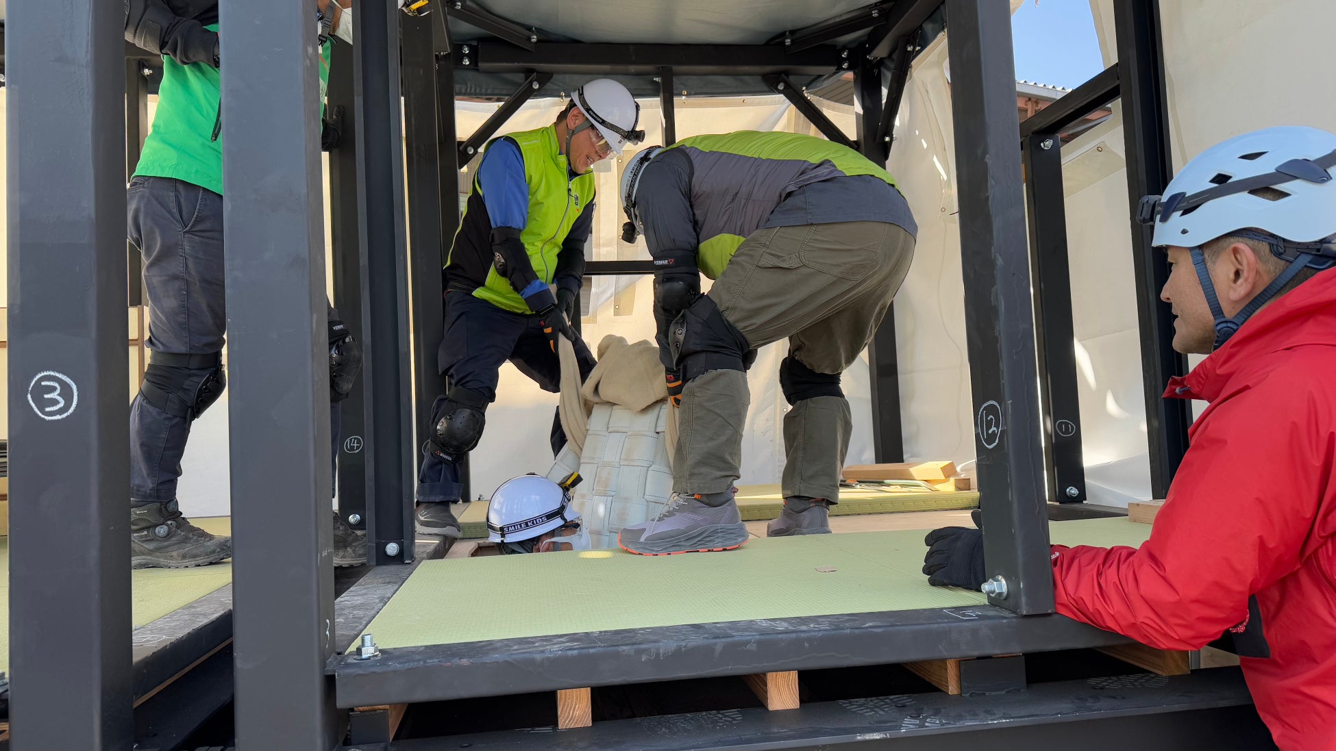 そこで(株)減災ソリューションズは、倒壊家屋や閉じ込め現場の状況を安全に再現できる可搬型の災害救助訓練用設備「Rescue Training Module™」を開発し、2024年10月にリリースしました。このモジュールは、倒壊木造家屋を模したリアルな環境で、効率的かつ安全に訓練を実施できるよう設計されています。これにより、実災害現場で直面し得る課題に対応する実践的な訓練が可能となります。
