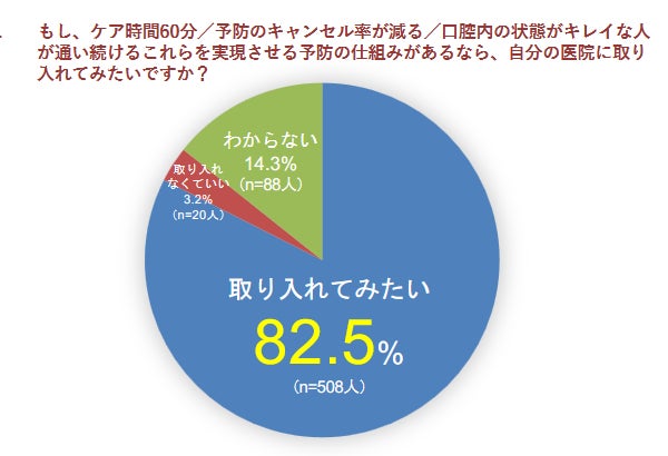 この結果を見ると、歯科衛生士の人材活用の最適な方法は歯科医が予防歯科をしっかりと理解し、正しい方法で取り入れて売上を伸ばしながら、歯科衛生士のやりがいを育てることだと考えます。それが前述の来院者様のリピート率の向上にも直結します。