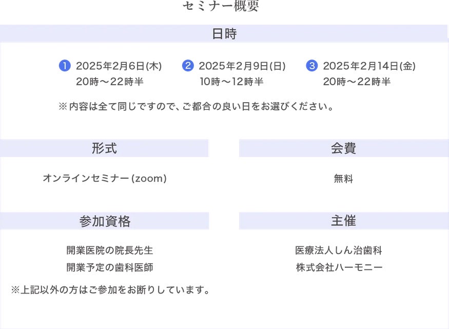 ・今回のセミナーは歯科医経営者のみ対象とさせて頂きます。