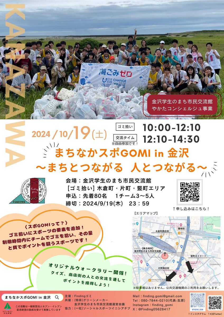 特定非営利活動法人グリーンメーカー(理事長:小西 和孝)(以下、グリーンメーカー)はFindingゴミ(代表:生原 志歩)が主催するごみ拾いイベント「まちなかスポGOMI in 金沢」に共催し、企画運営のサポートを行う。