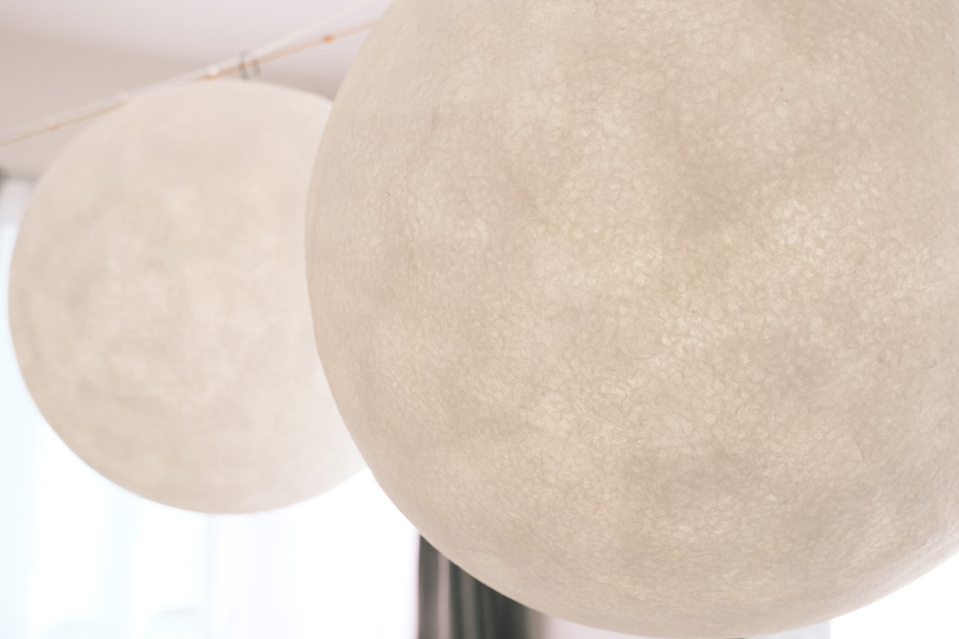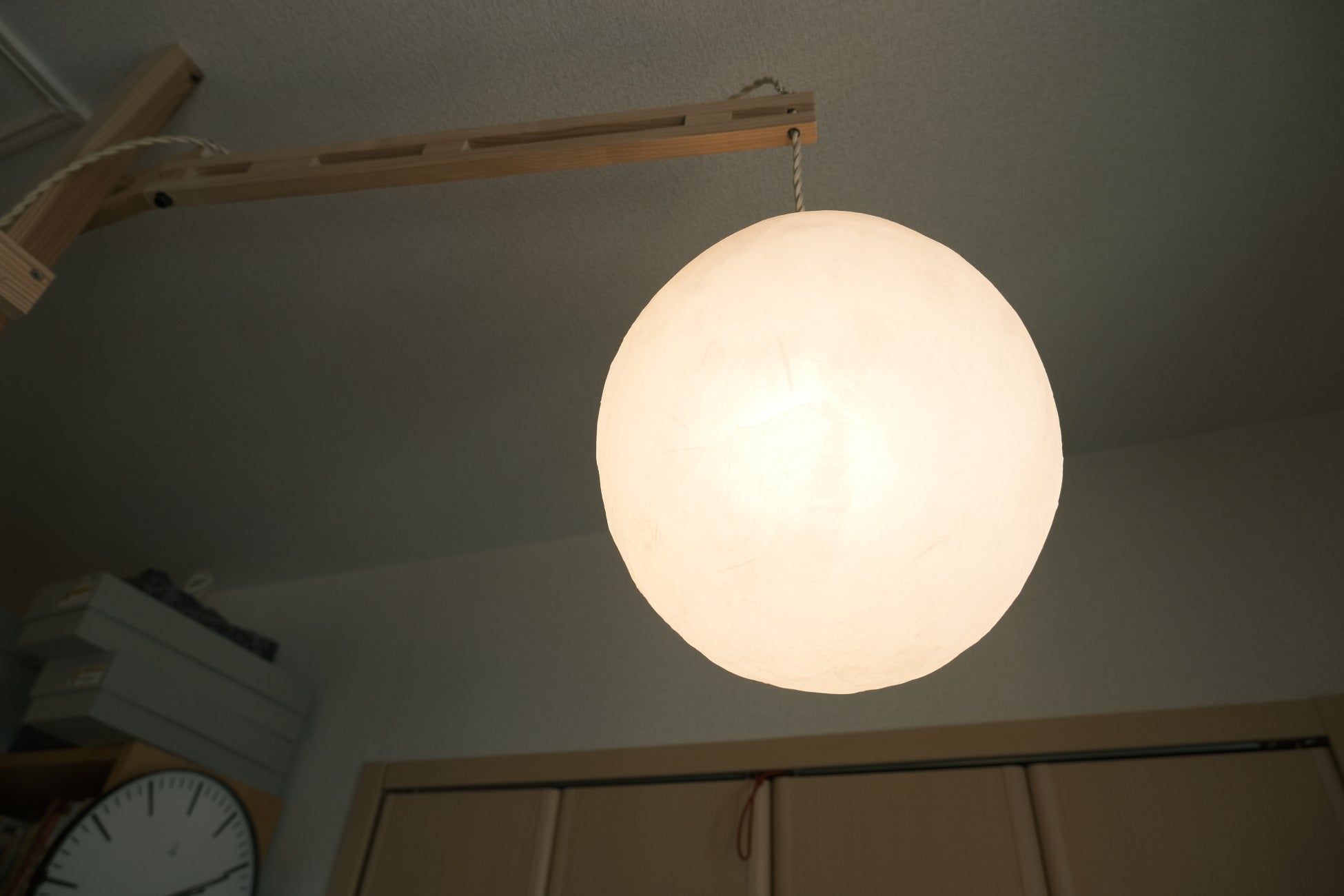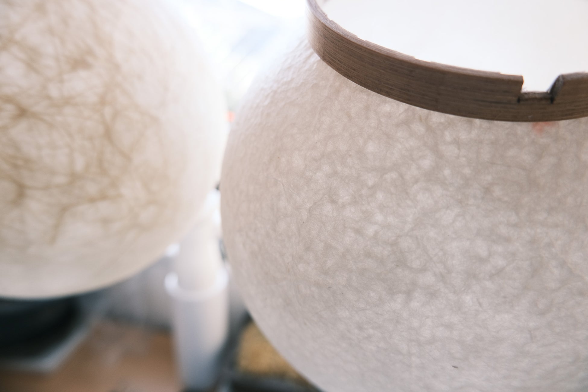 職人が漉き上げた極々薄い和紙を使用し、フレームのない独自の工法で、何枚も何枚も貼り合わせ形作られたランプは、シンプルでナチュラルな造形美を生み出します。