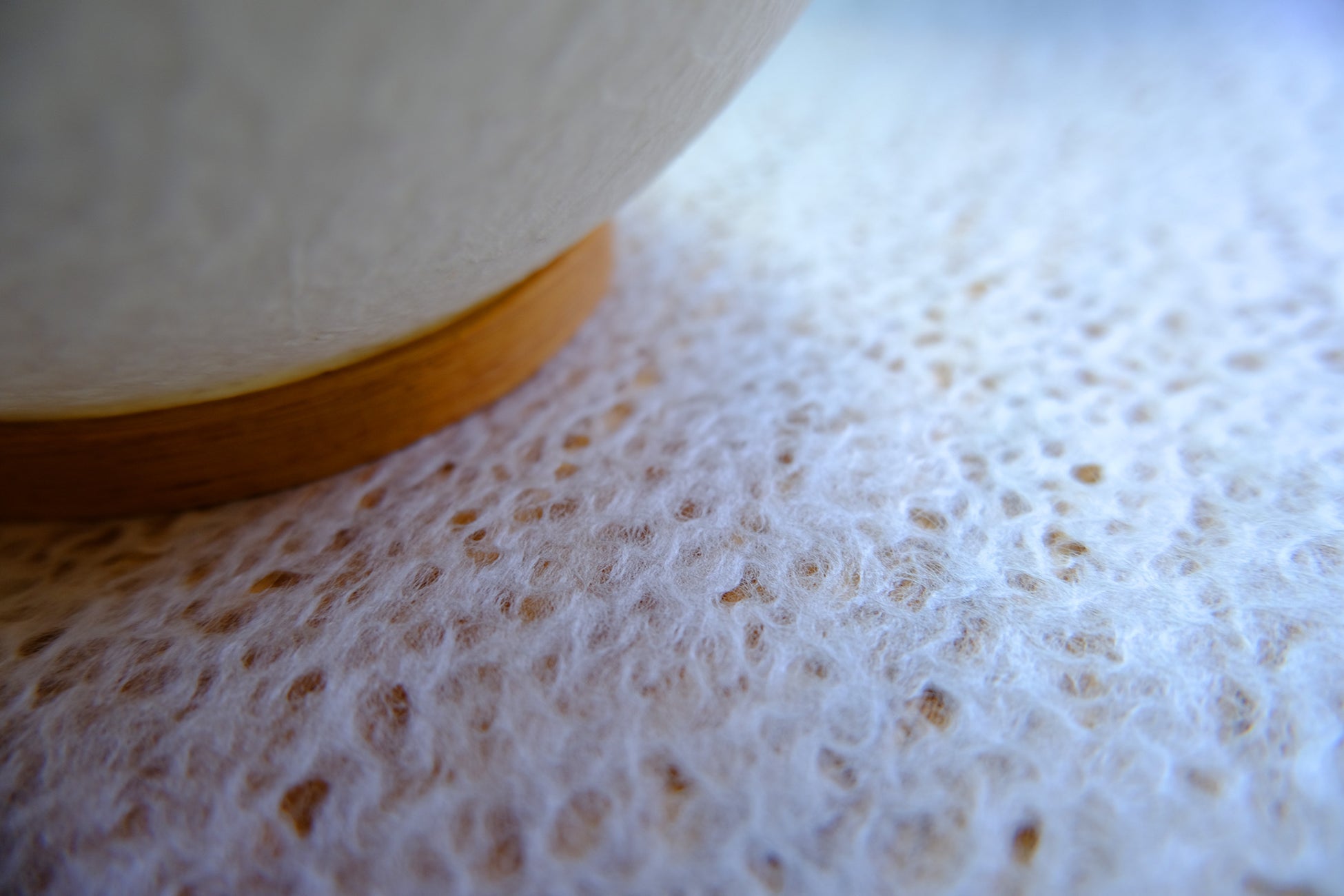 和紙は日本の三大和紙である土佐和紙、美濃和紙、そして1300年の歴史を持つ阿波和紙を中心に職人の技術が活かされる製法で作られた和紙を使用。なかでも、極薄く、そして滲み止めなどの処理が極力されていないもののみがKASOKEKI lampとなります。