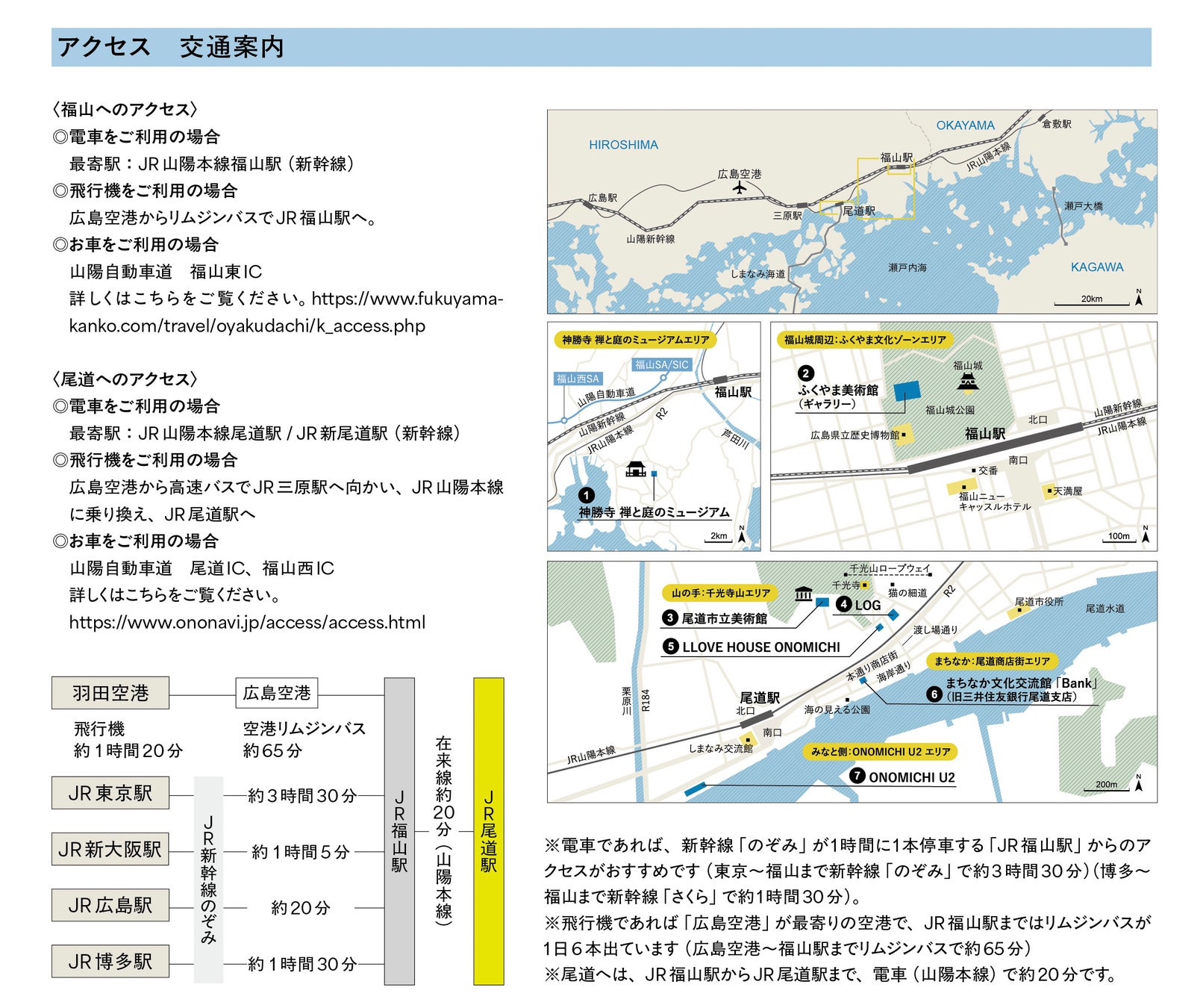 後援:文化庁 広島県 福山市 尾道市 一般社団法人せとうち観光推進機構 一般社団法人広島県観光連盟(HIT) 広島商工会議所 福山商工会議所 尾道商工会議所 中国新聞社