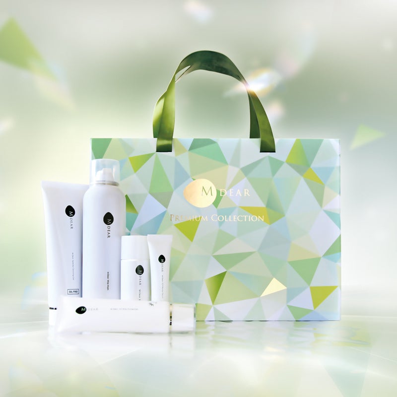 「エムディア プレミアムコレクション」はスピーディークレンジングジェル(クレンジング)、ホイップウォッシュ(洗顔料)、UVシルキープロテクション(日焼け止め)の現品サイズに加え、EGFリニューローション(化粧水)、EGFリニューセラム(美容液)をミニサイズでお試しいただけ、エムディアを代表するスキンケアが揃う内容です。