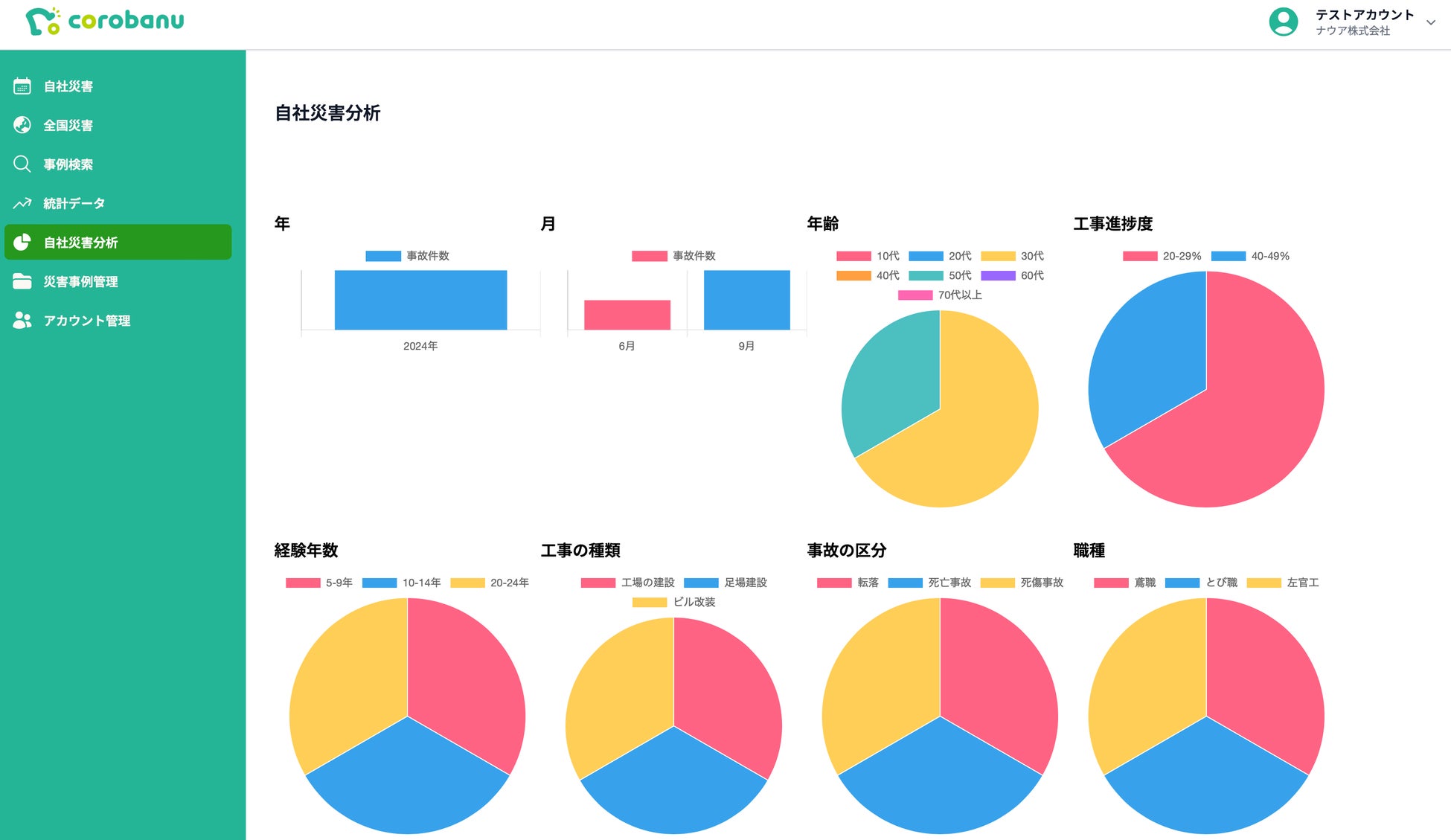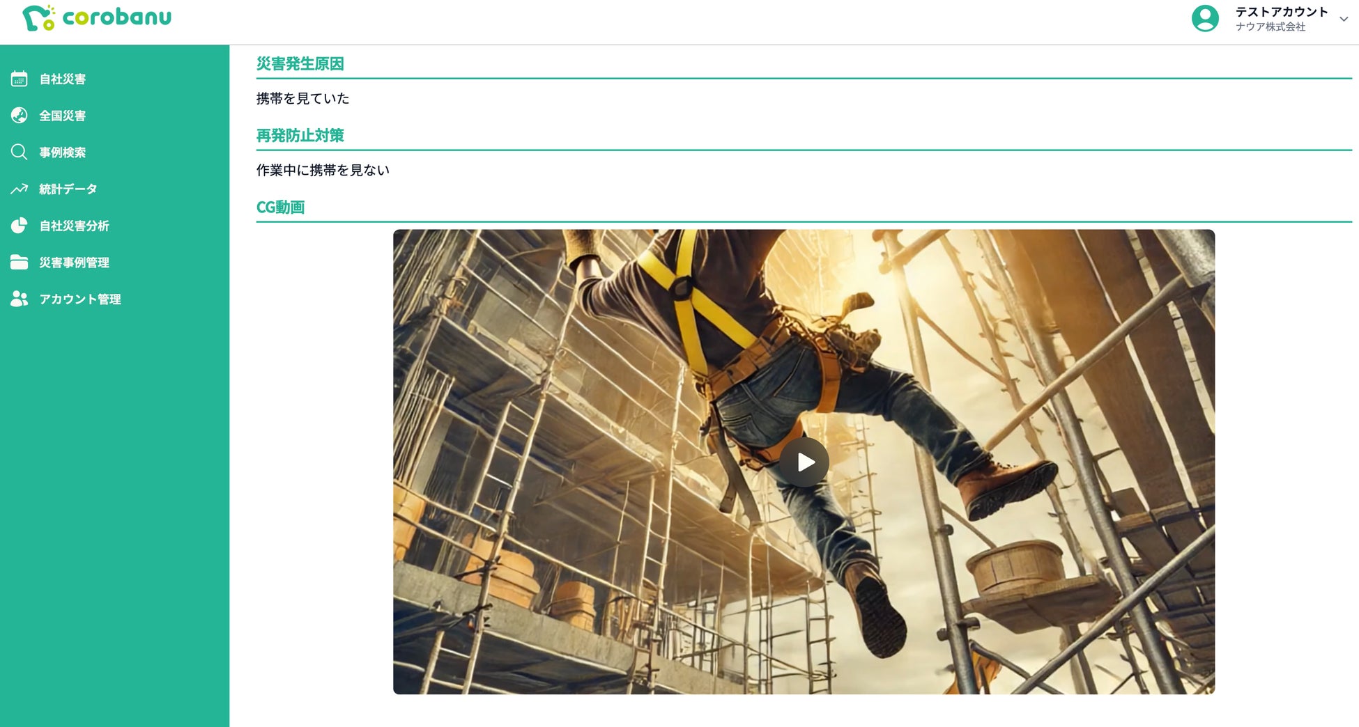 ナウア株式会社(本社:東京都葛飾区、代表取締役:藤澤 竜治)は、建設業界向けに特化した労働災害データの登録、リマインド機能、厚生労働省の全国データの検索・分析、AIによる危険予知サポート機能を備えたSaaS型アプリケーション「corobanu(コロバヌ)」をリリースしました。月額10,000円から利用可能なcorobanuは、災害データの記録と分析を通じて、安全管理体制の強化に貢献します。