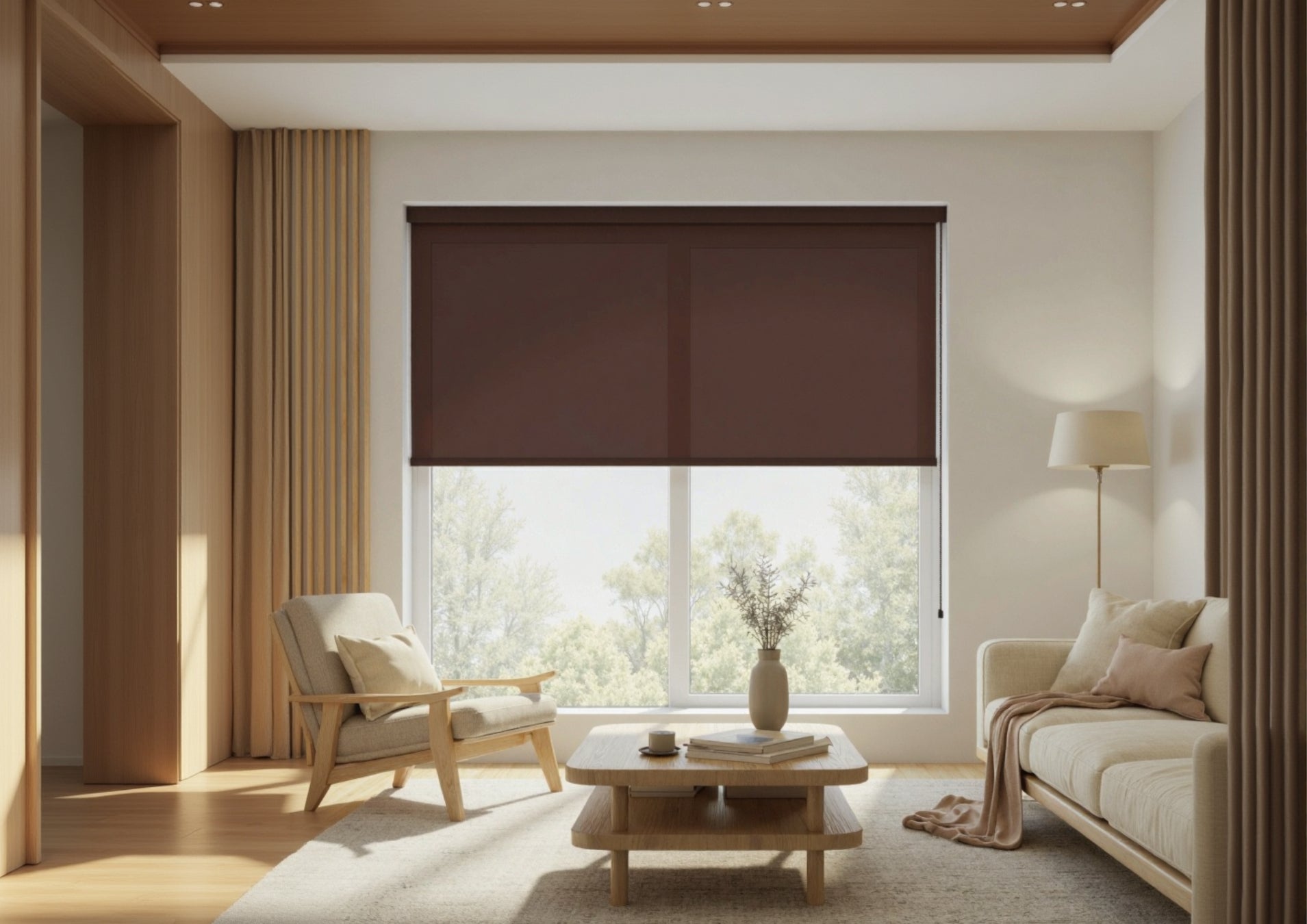 ローラーシェード: 巻き上げ式のシェード。多彩なカラーやテクスチャーの生地を取り揃え、あらゆるインテリアに調和するデザイン性が特徴です。