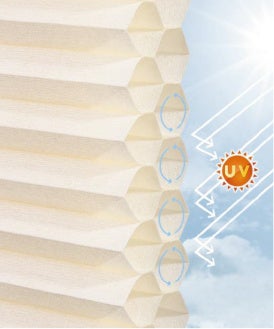 ハニカムシェード: 六角形のハニカム構造により、優れた断熱効果を発揮し、省エネに貢献します。調光性と遮光性にも優れ、プライバシーを確保しながら快適な室内環境を提供します。
