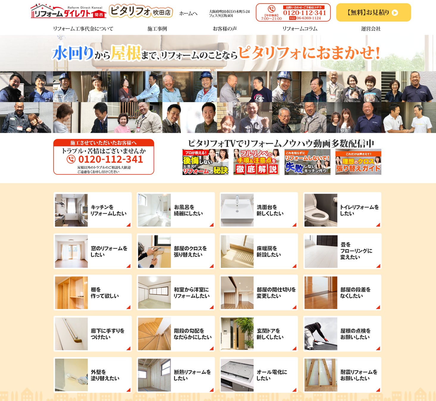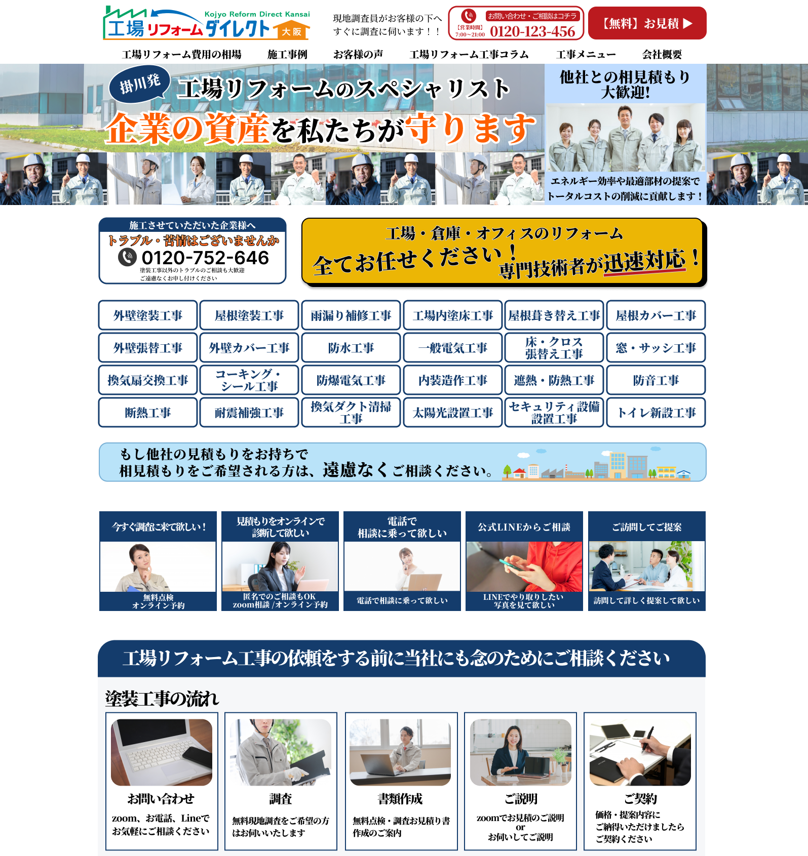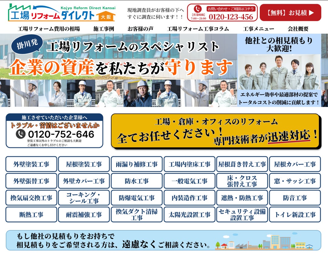 外壁塗装、屋根工事、水回りリフォーム、断熱リフォームなど、各リフォームカテゴリごとの専門サイトを提供。顧客のニーズに的確に応える設計となっています。