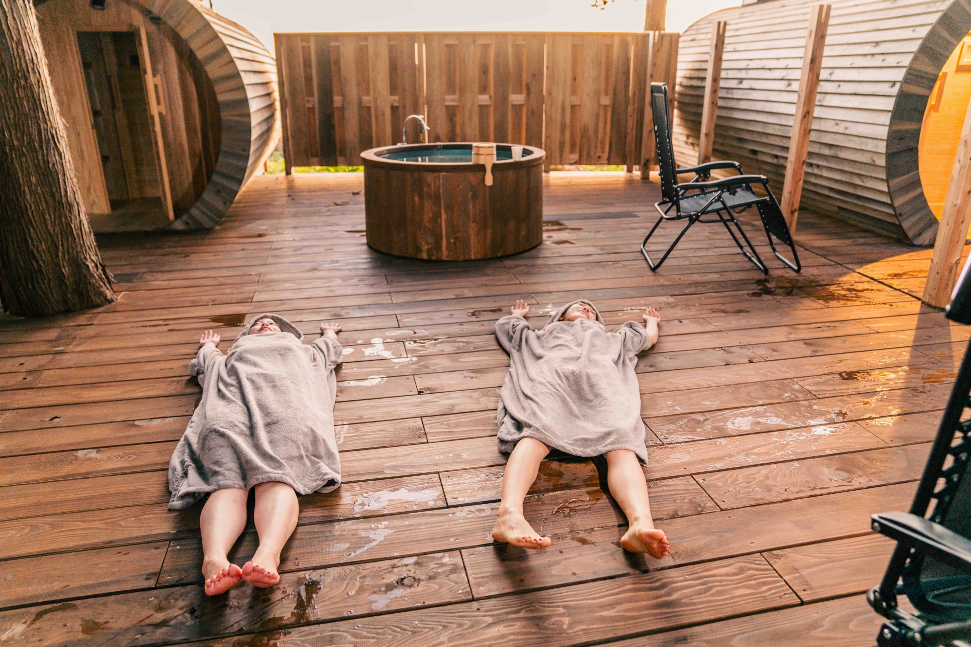 サウナエリアはウッドデッキでできており、寝転ぶことも可能です。