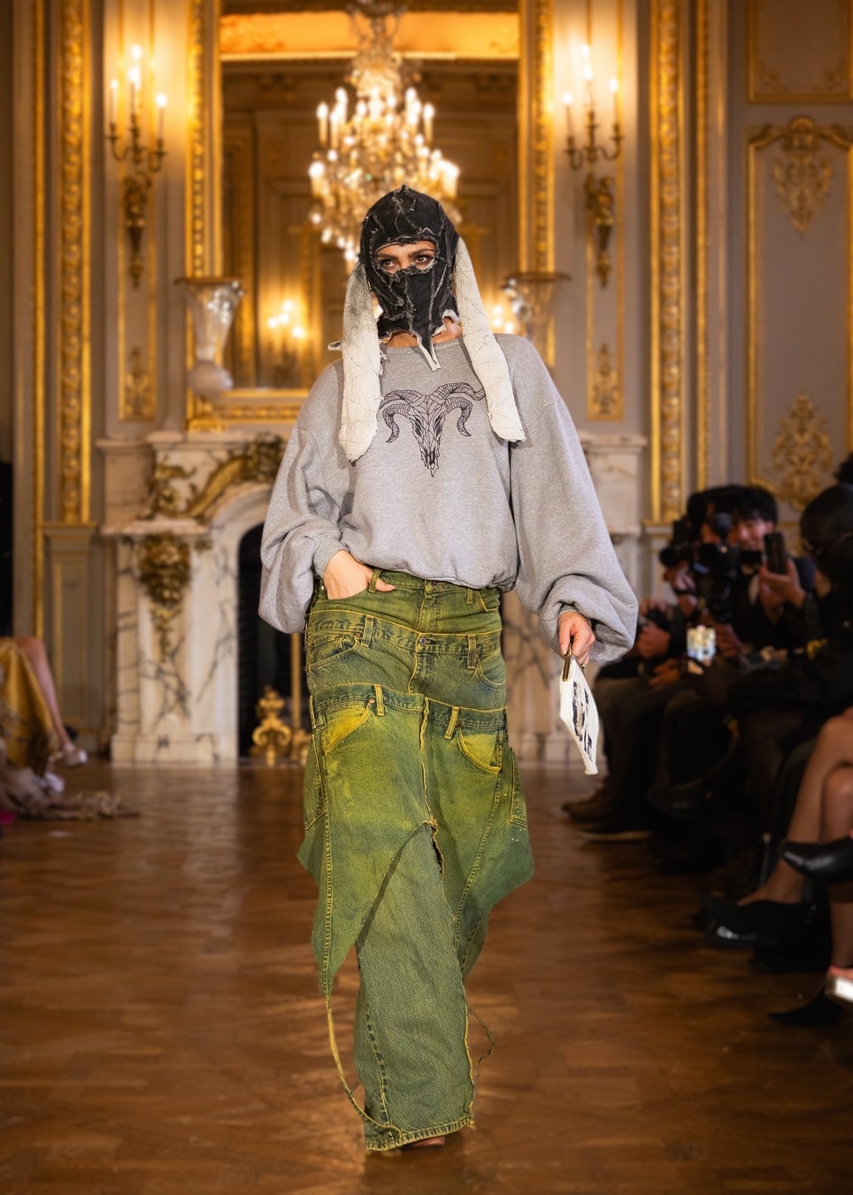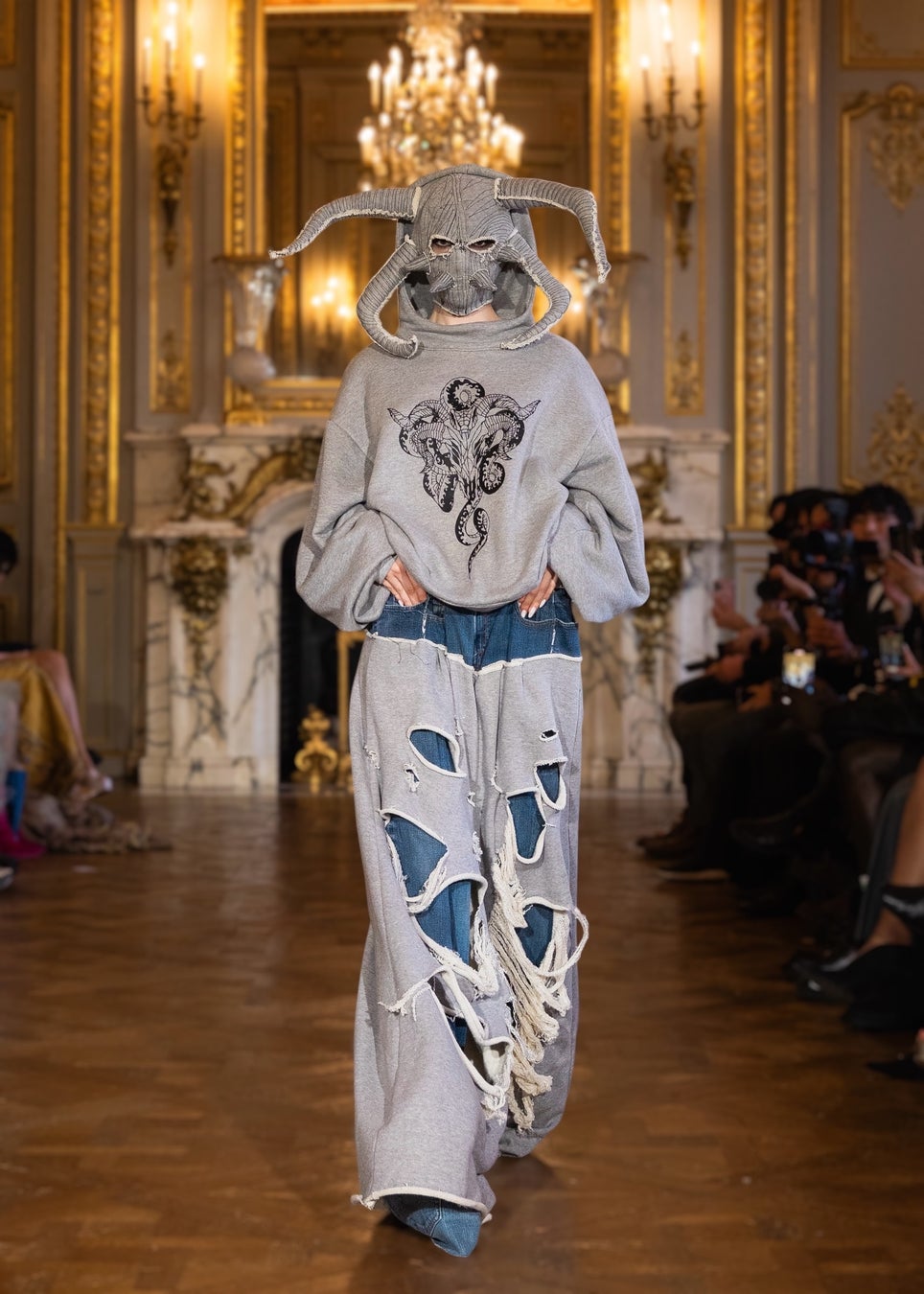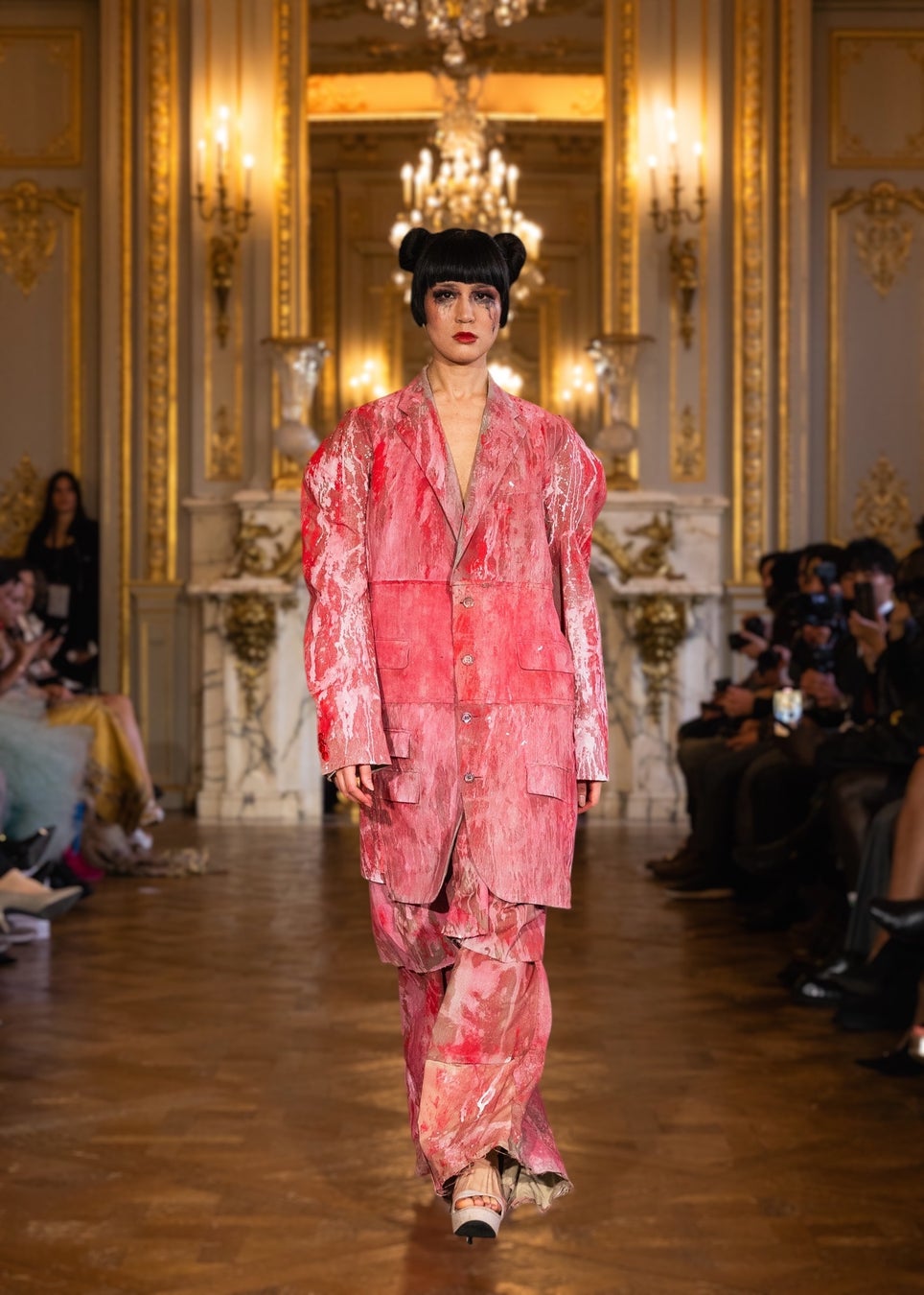2025年3月9日、パリ・ファッションウィーク期間中に開催されたファッションウィークスタジオ主催のランウェイショーにて、再倖築が2度目のコレクションを発表しました。会場となったシャングリ・ラ ホテルの荘厳な空間の中で、「パンク」 をテーマに掲げた15体のルックが披露され、既存の枠を超えた独創的なデザインとリメイク技術が際立つショーとなりました。