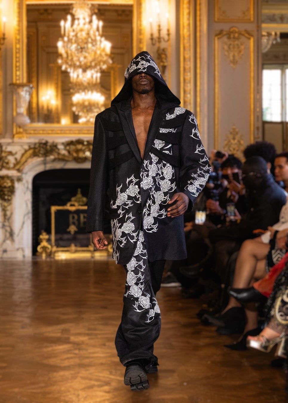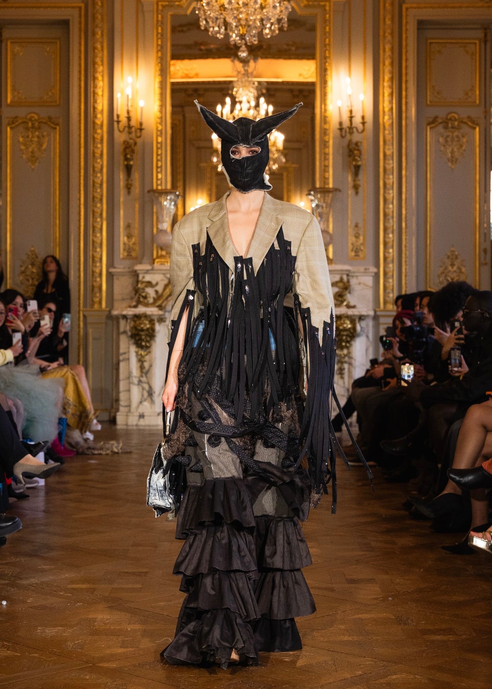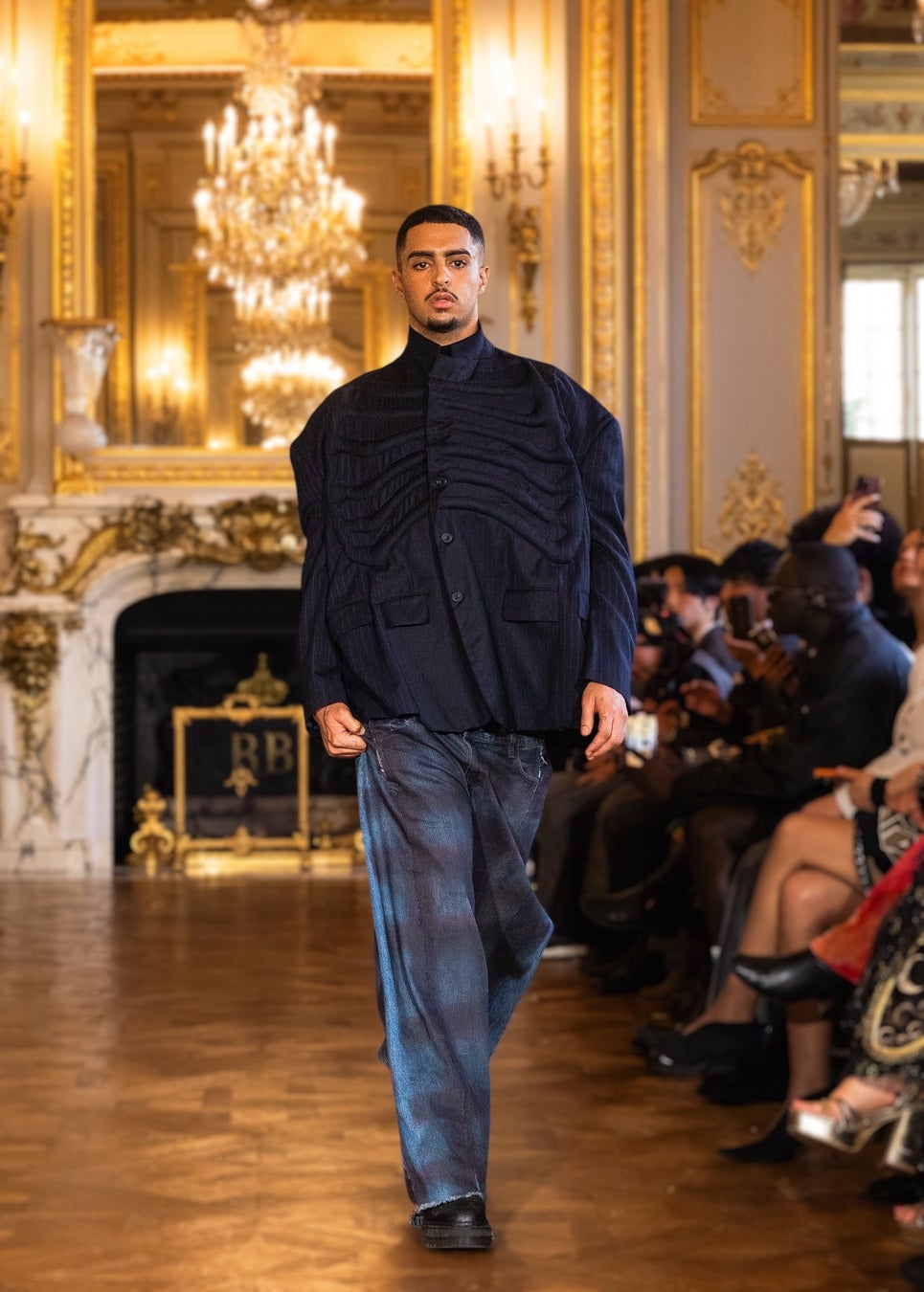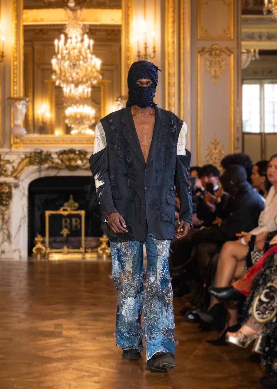 2025年3月9日、パリ・ファッションウィーク期間中に開催されたファッションウィークスタジオ主催のランウェイショーにて、再倖築が2度目のコレクションを発表しました。会場となったシャングリ・ラ ホテルの荘厳な空間の中で、「パンク」 をテーマに掲げた15体のルックが披露され、既存の枠を超えた独創的なデザインとリメイク技術が際立つショーとなりました。