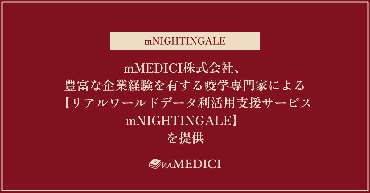 mMEDICI株式会社、豊富な企業経験を有する疫学専門家による【リアルワールドデータ利活用支援サービスmNIGHTINGALE】を提供
