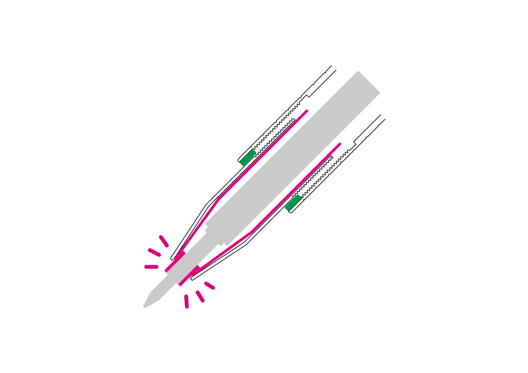 ペンジャケットの中には部品が1つだけ。固定⽤のアダプタにペン先が装着できて、ボディ内にリフィルが収まれば組込み完了です。リフィルの品種毎に必要だった調整⽤のスペーサーや固定⽤のバネ、リフィルの改造などの⾯倒な作業は⼀切ありません。