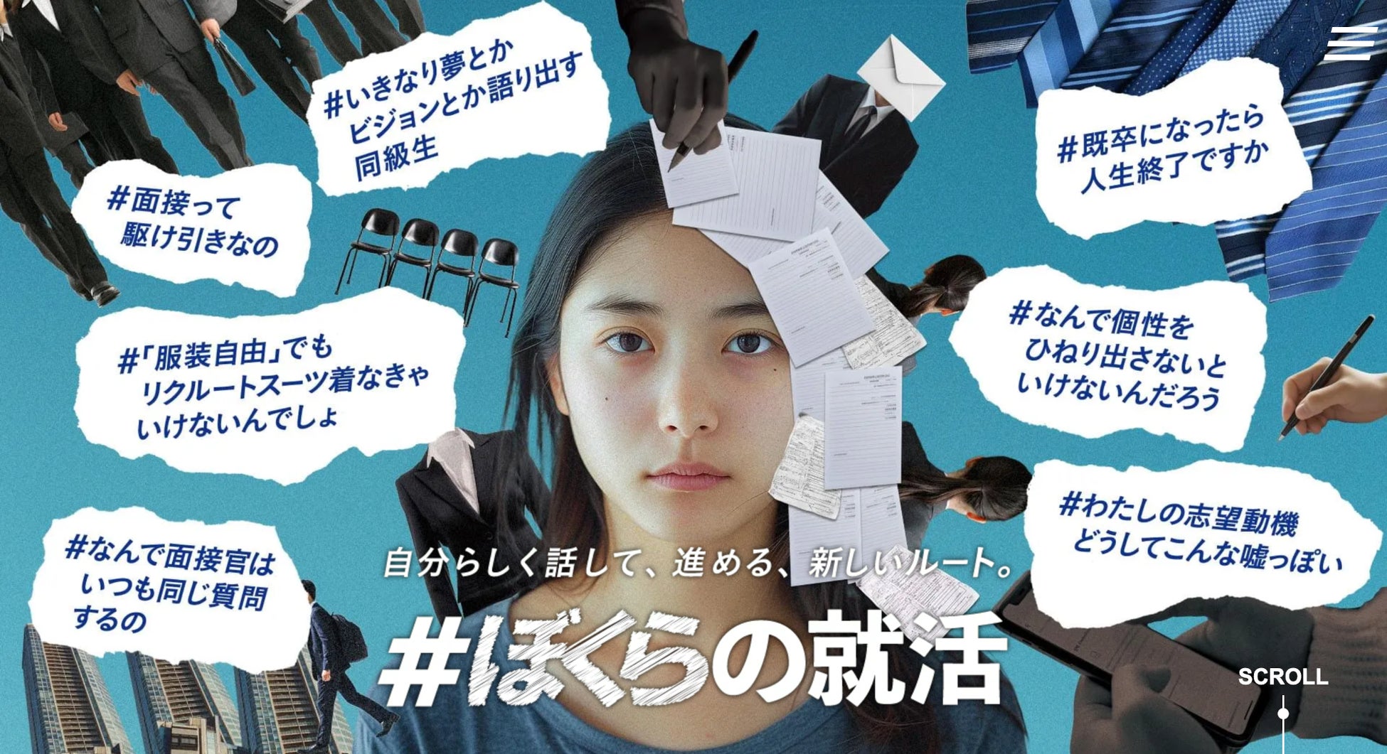 今回のリブランディングでサイトもリニューアルしました。コンセプトに沿った世界観で展開されており、広告クリエイティブも楽しめます。「ぼくらの就活」への応募要項やイベントのスケジュールが公開されており、希望者はすぐ申し込むことができます。