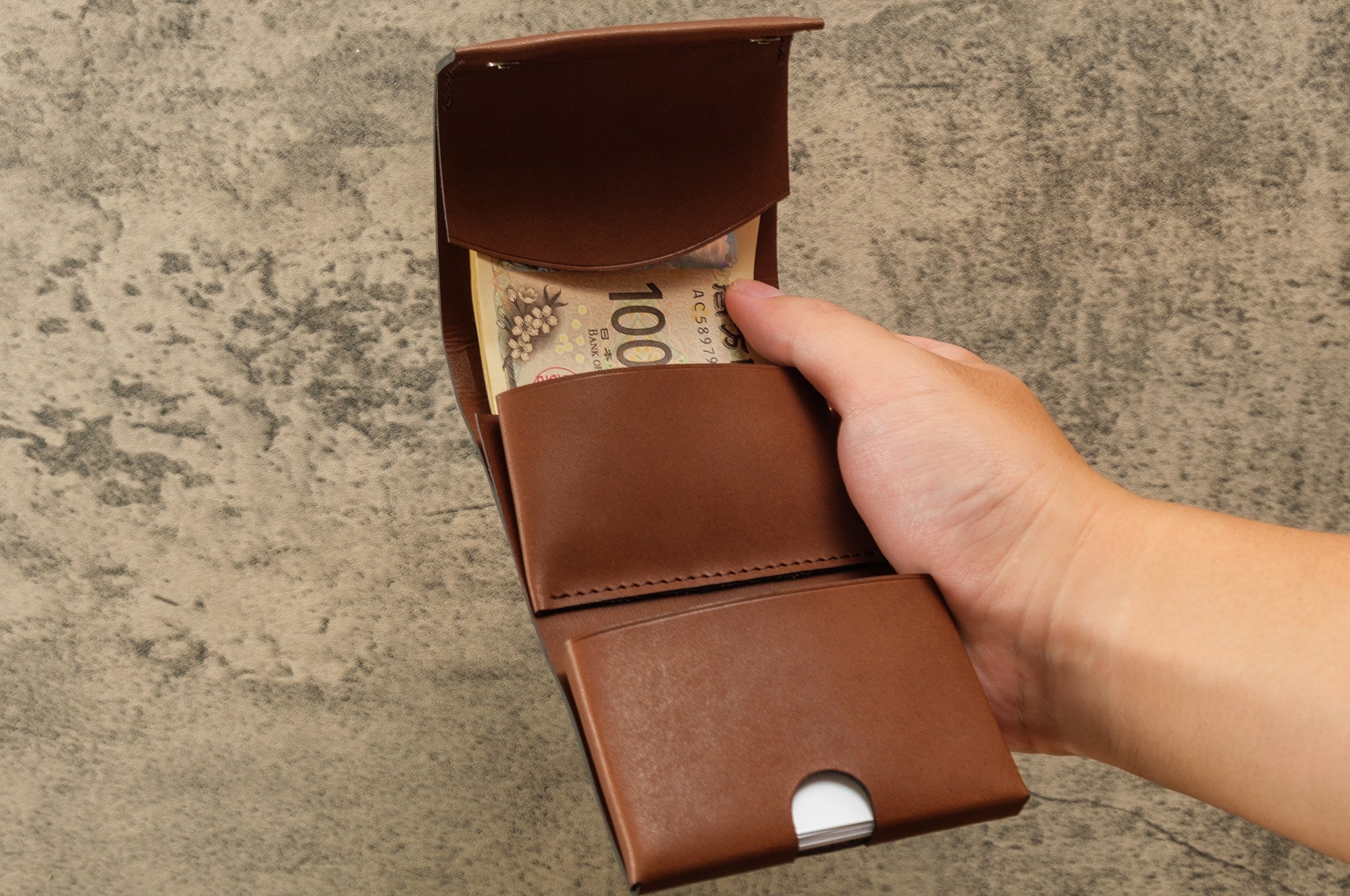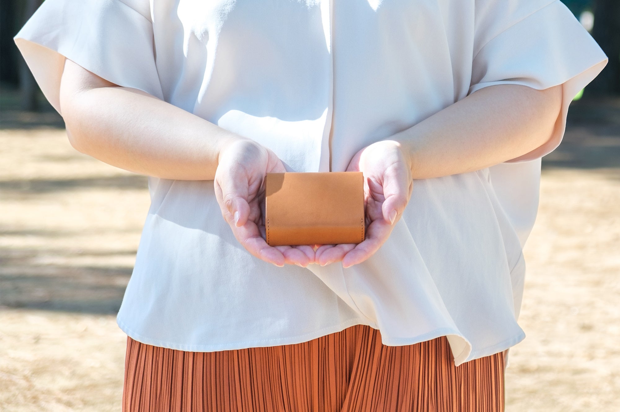 手のひらに収まるサイズ感と優れた収納力。栃木レザーを使用したこの財布は、持ち歩く心地よさと機能性を両立したキャッシュレス時代にフィットする日本製のコンパクト財布。