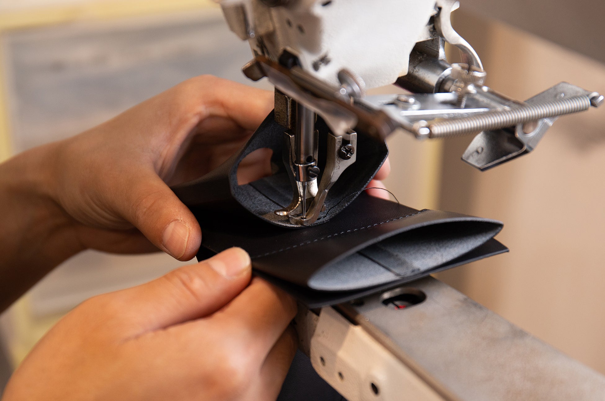 「SOU mini WALLET」は、プロダクトのアイデアだけでなく、制作する人と場所にもこだわっています。レザー製品をはじめとしたものづくりが盛んな街、台東区蔵前。長く愛用していただける財布になるよう、蔵前にアトリエを構える信頼できる職人によって手作業で制作しています。