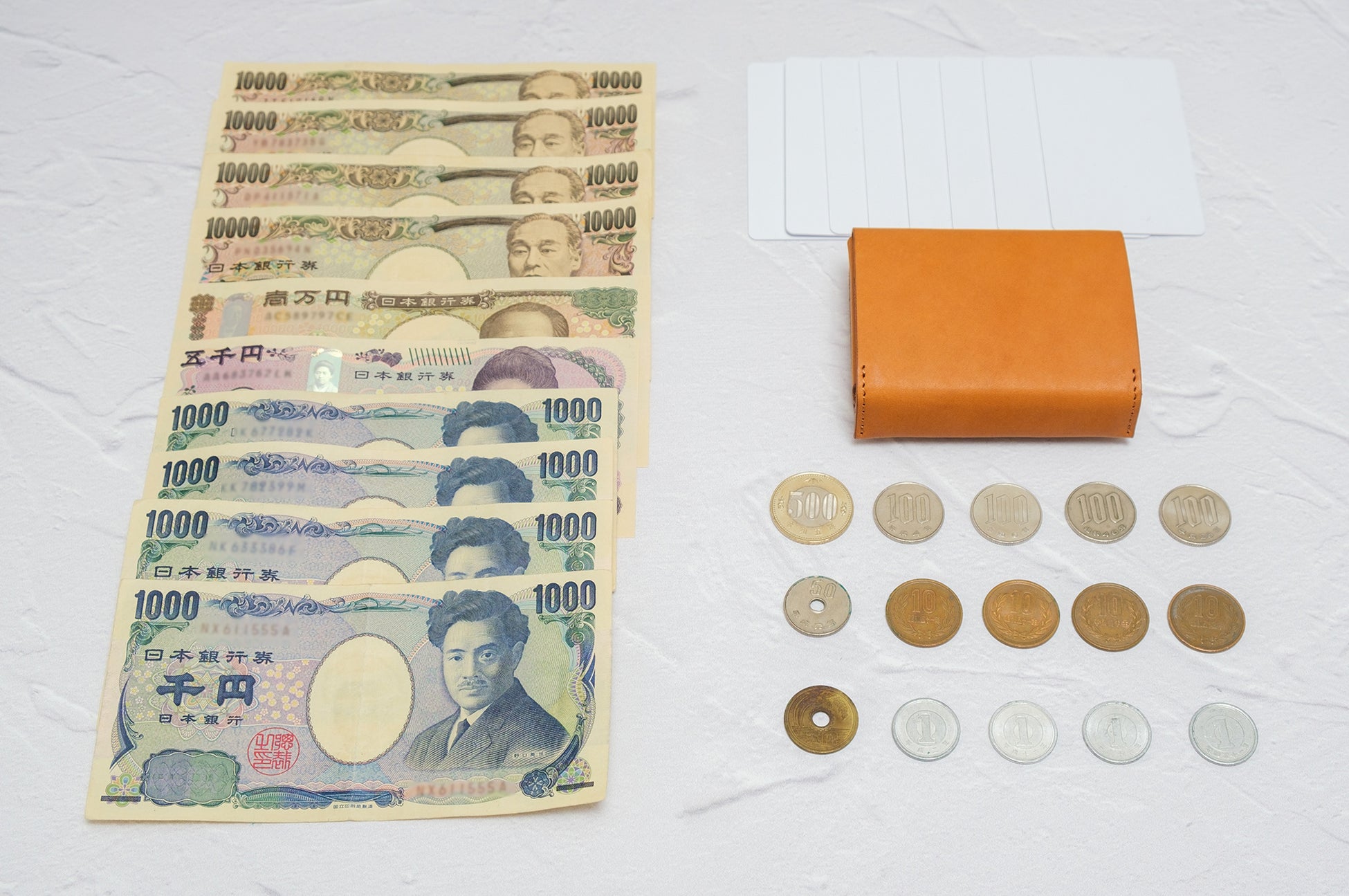 カード8枚、紙幣10枚、小銭15枚