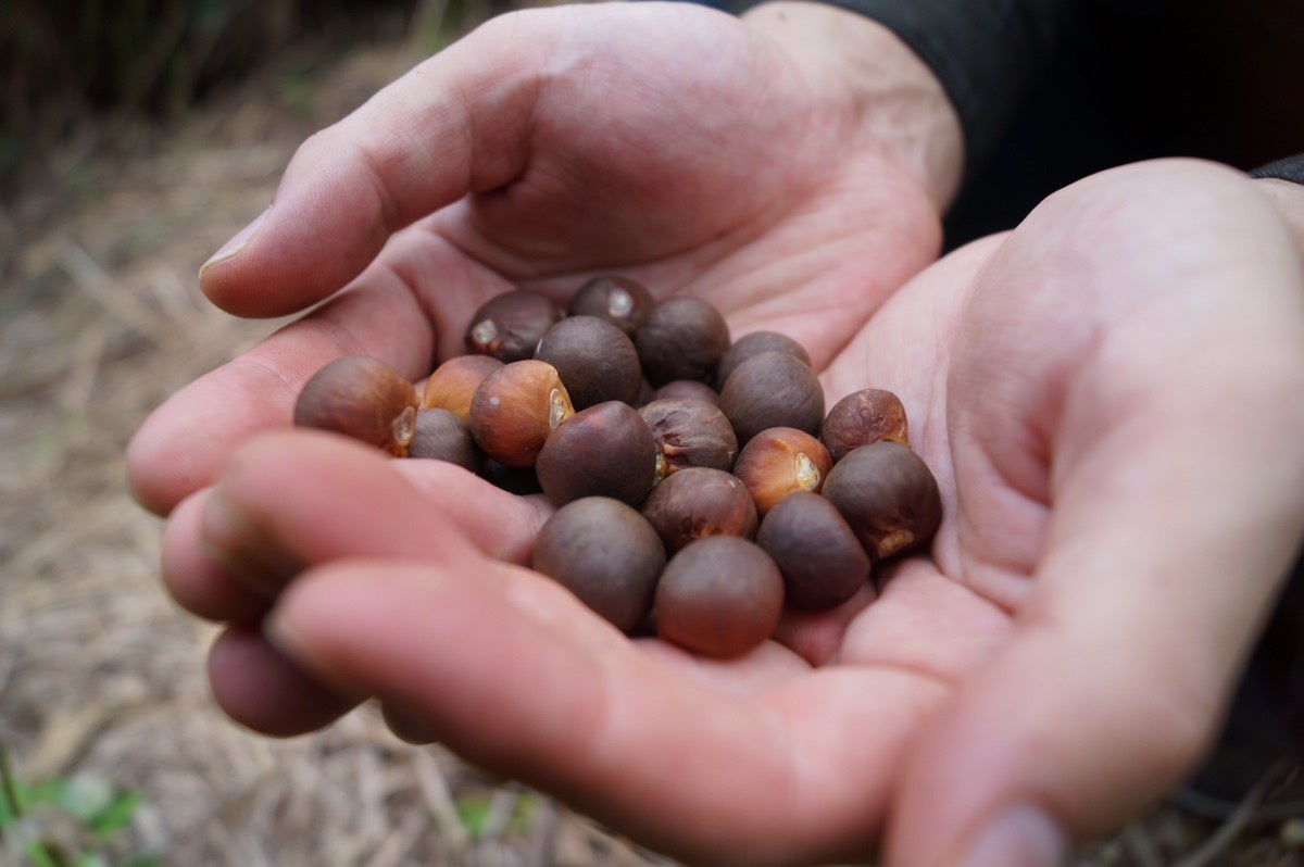 宇治田原町では、茶農家の高齢化や就労者の減少から、茶畑の手入れが行き届かなくなった耕作放棄地に成る茶の実を1つ1つ拾い集め、製品化する試みを行っています。今回、(株)スパホスピタリティーでは、地域社会への貢献、文化継承、そして自然との共存という3つのポイントからその取り組みに賛同し、商品としての展開を決定しました。